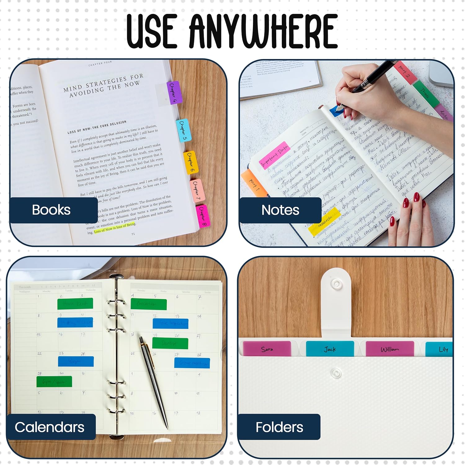 - High-Quality Tabs - Made with tear-resistant plastic, our 2-inch page tabs are also water-resistant. The smooth writing surface ensures your notes are clear and legible, and the transparent self-adhesive part keeps your tabs securely in place.