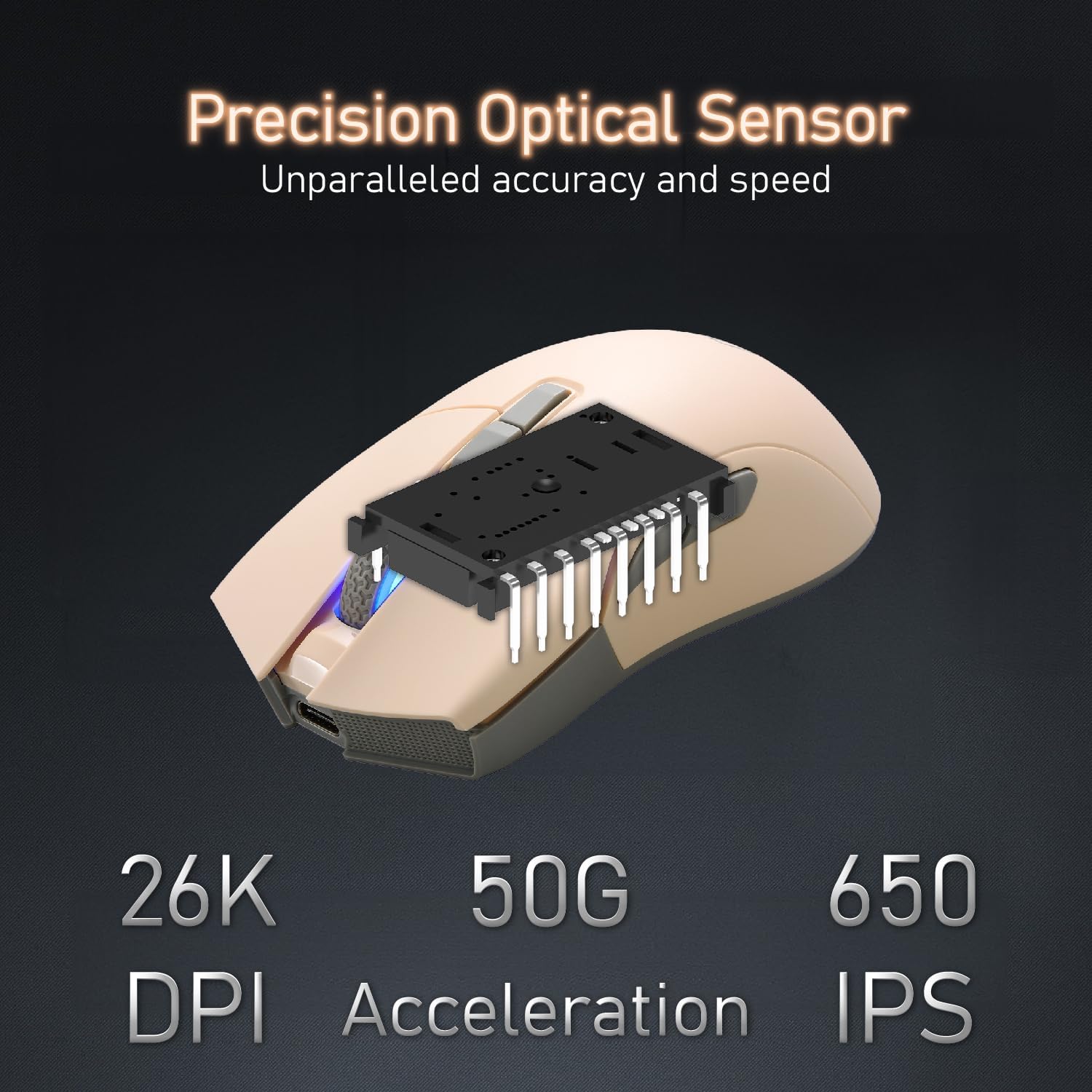 - PixArt PAW 3395 Optical Sensor ⚡️ adjustable DPI up to 26,000 dpi resolution. You can promptly adjust the moving speed for a fast response during gaming.