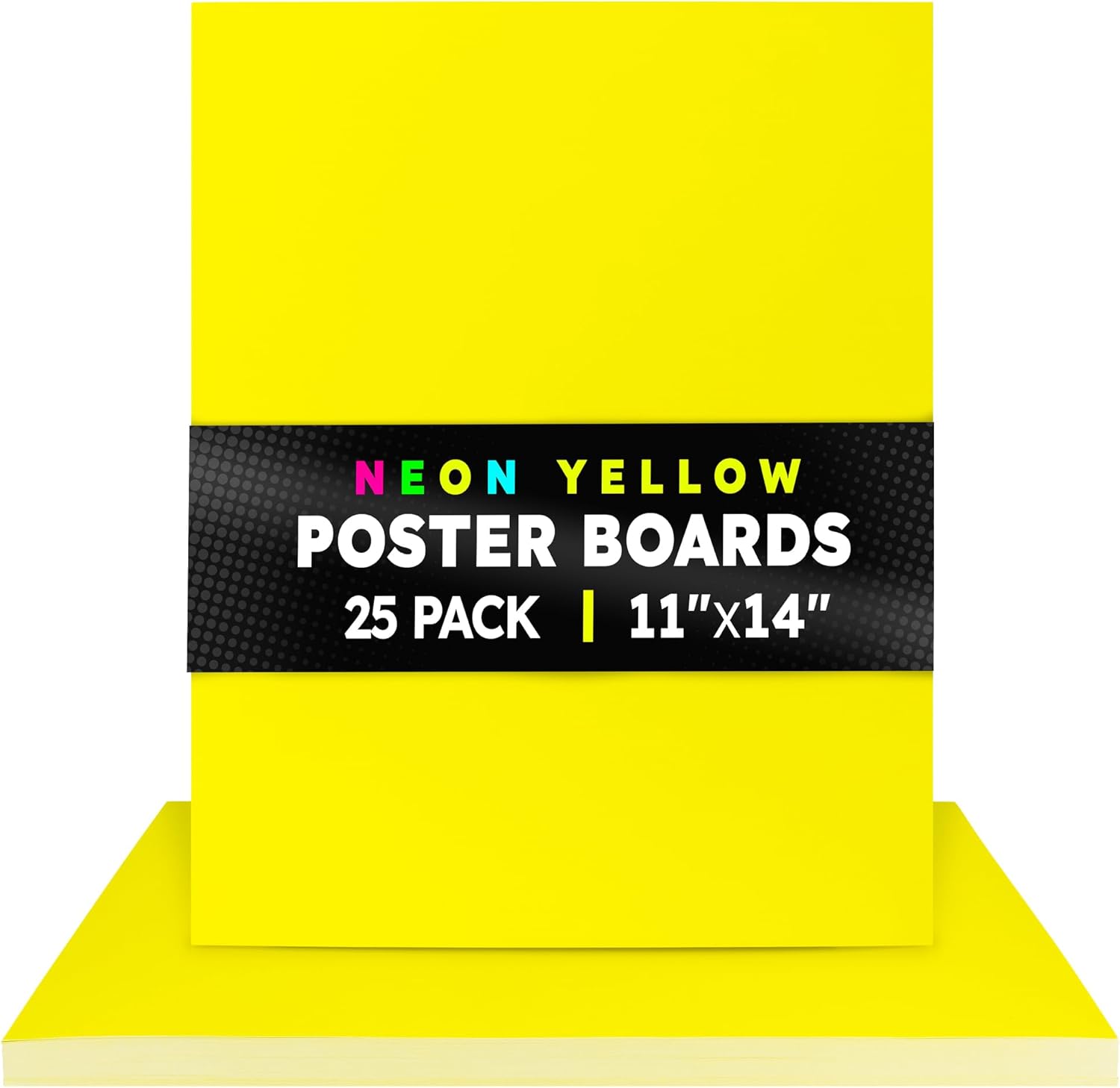 Hygloss Medium Poster Board 11x14 - 25 Neon Yellow Single Color Poster Boards Bulk Pack - 10 Pt. Thickness Colored Poster Board Paper for Projects, Signs, Displays - Posterboard Multipack 11" x 14"