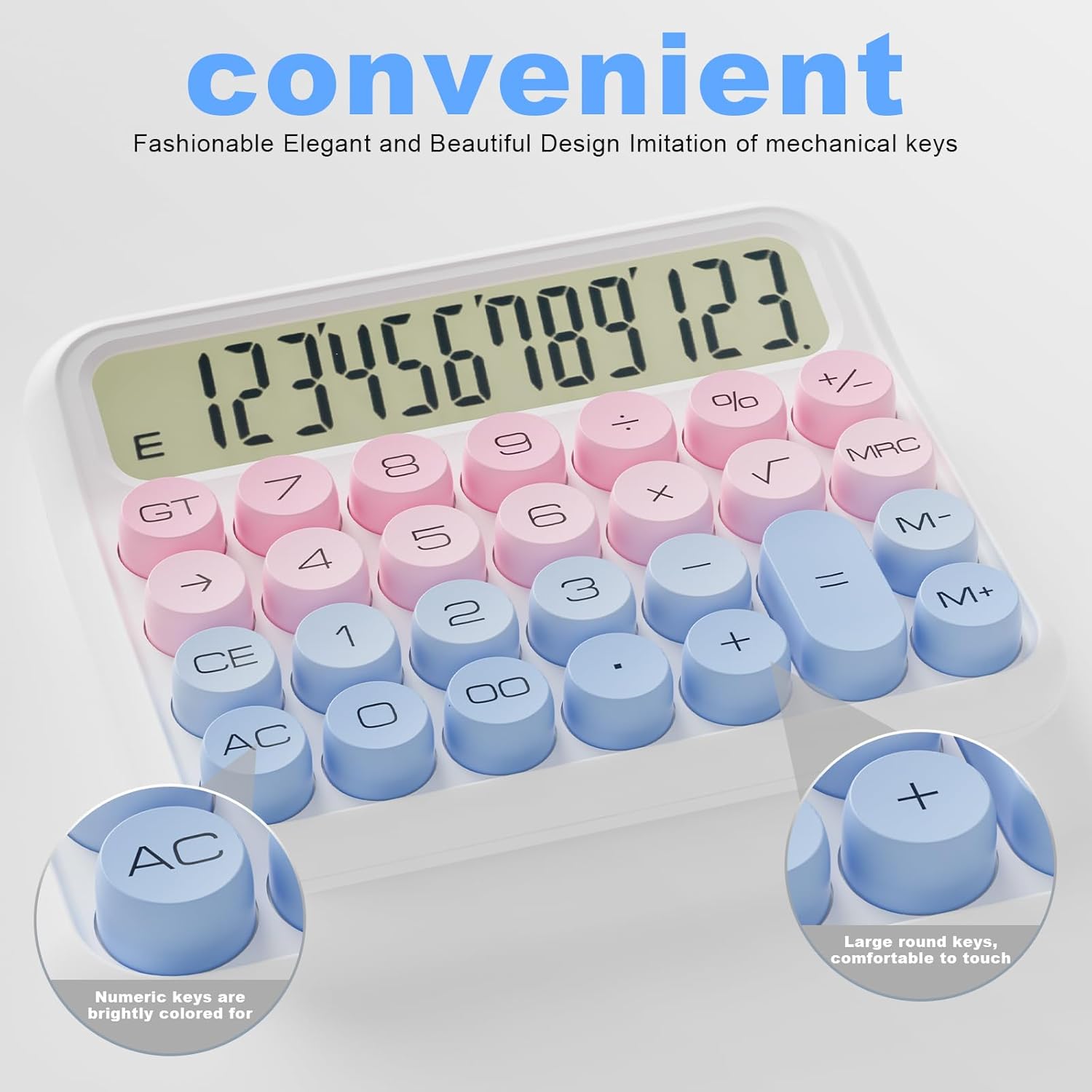 - Battery Power Mechanical Calculator:ABS material imitation mechanical keyboard calculator with retro round large button keys, comfortable to the touch.