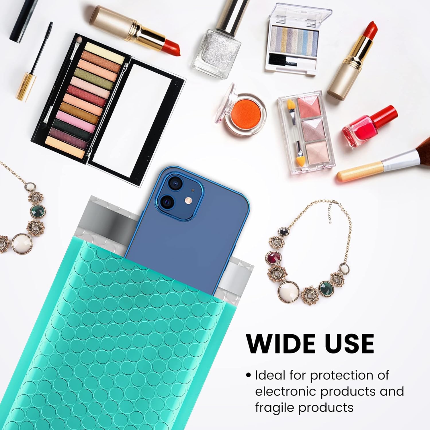- Perfect Size Teal 000 Bubble Mailers: The small bubble mailers outer size is 4x8 inch, while the inner size is 4x7 inch. It is very suitable to transport for jewelry, makeup, cards, phone case, Lips, photos,handcraft and more.