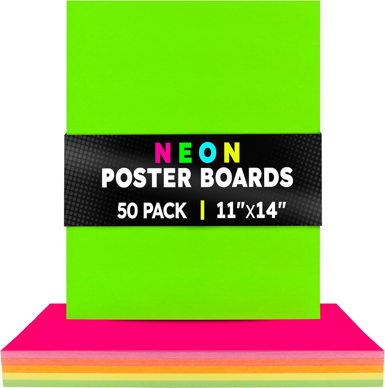 Hygloss Medium Poster Board 11x14 - 50 Assorted Neon Color Poster Boards Bulk Pack - 10 Pt. Thickness Colored Poster Board Paper for Projects, Signs, Displays - Posterboard Multipack 11" x 14"