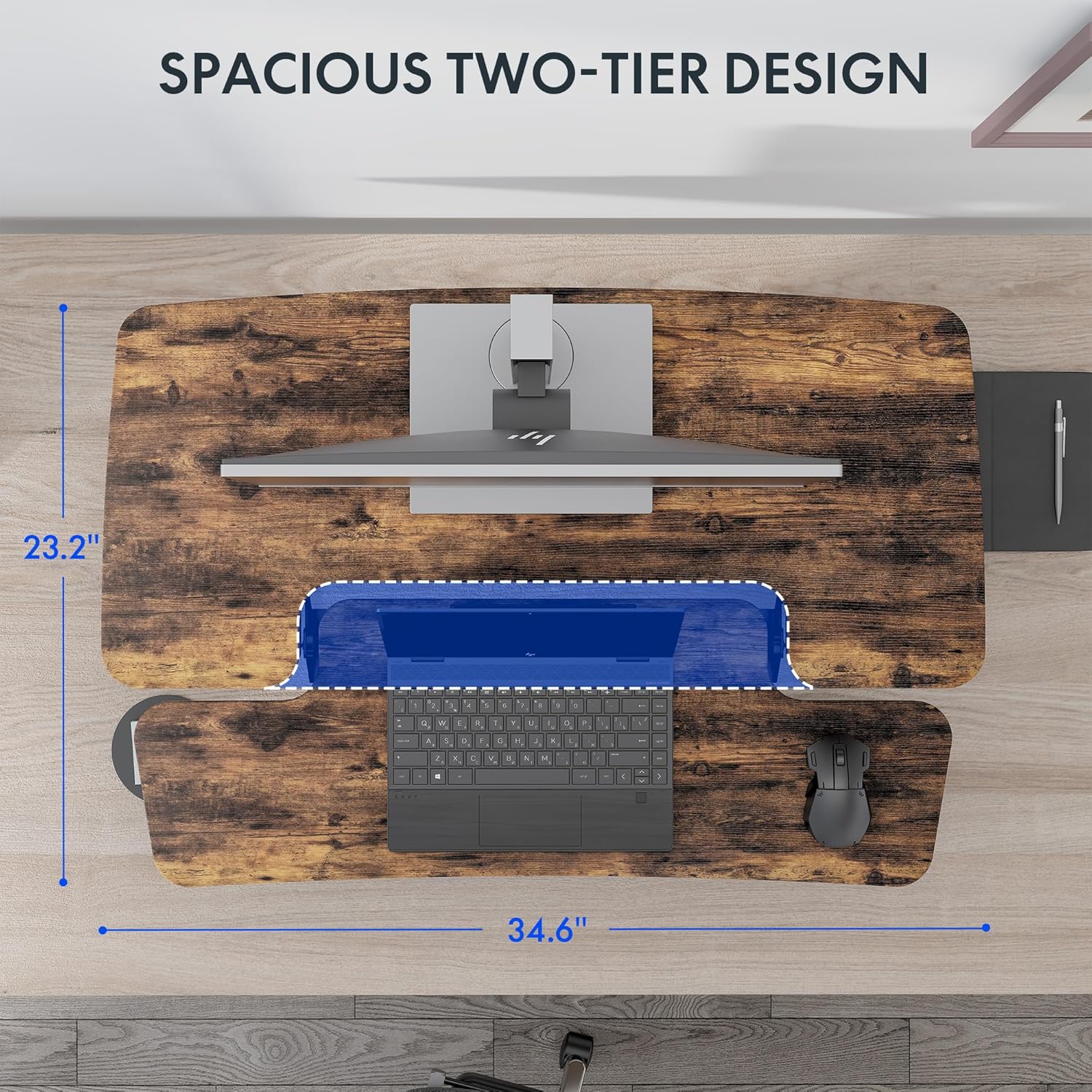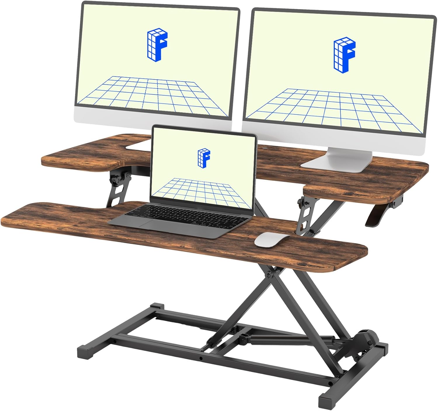 FLEXISPOT 35" Height Adjustable Standing Desk Converter Sit-to-Stand Desk Riser with Wide Keyboard Tray Workstation for Home and Office, Rustic Color
