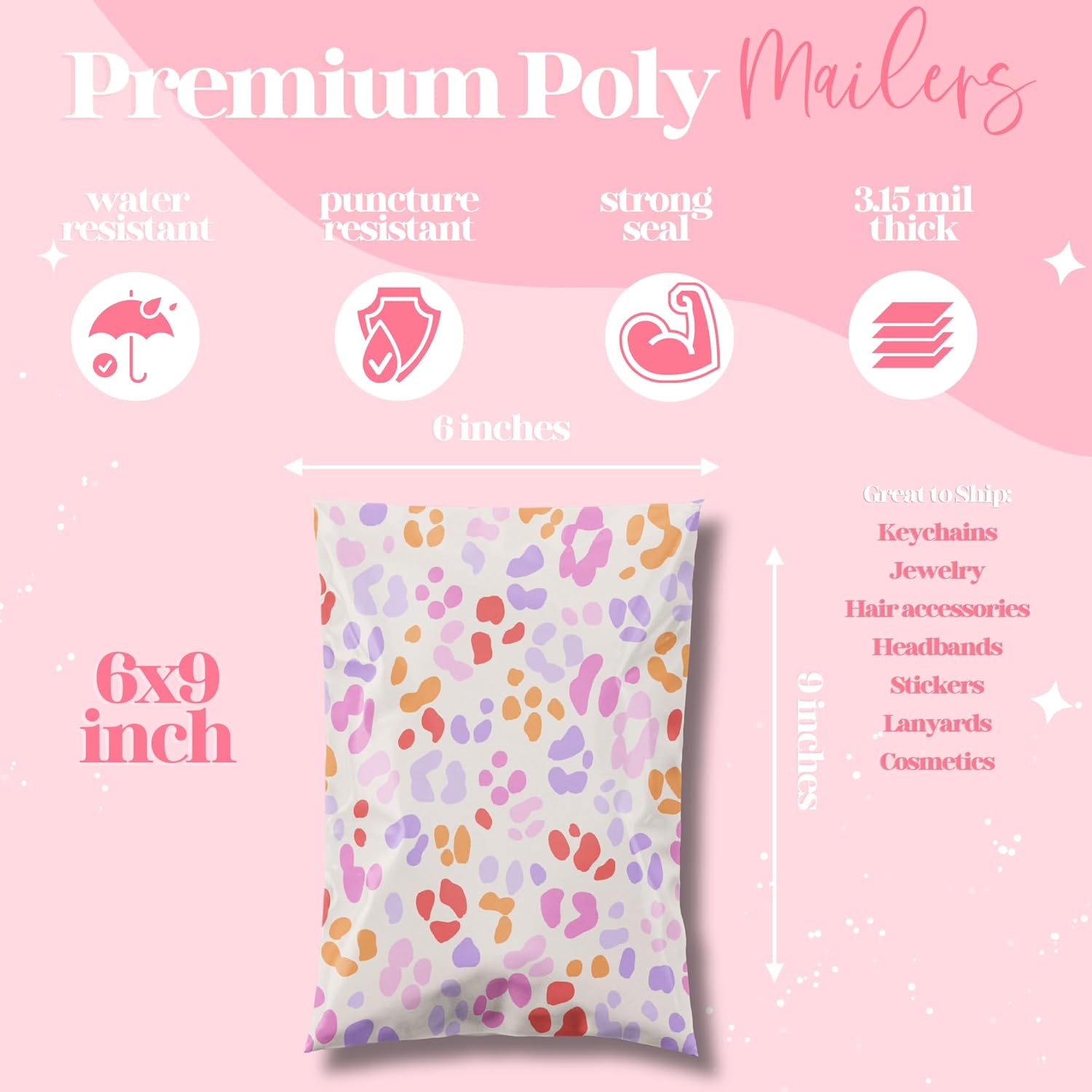 6x9 Designer Poly Mailer 100 Pack Heavy Duty Waterproof Self Seal Shipping Bags for Small Business Large Mailing Envelopes Bulk Tear Resistant Cute Packaging Preppy Leopard