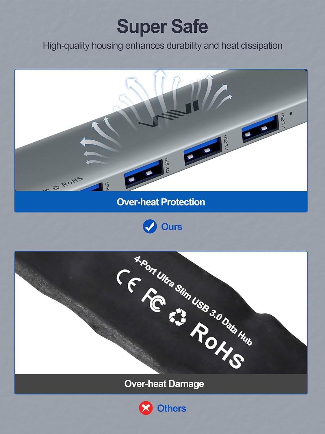 - High-Speed Data Hub: The 4-port USB distributor utilizes high-efficiency USB 3.0 to provide stable data transfers of up to 5Gbps (USB 3.0) and supports transfer speeds of 480Mbps (USB 2.0) and 12Mbps (USB 1.1).***This device is only used for data transmission and cannot be used to charge the device***