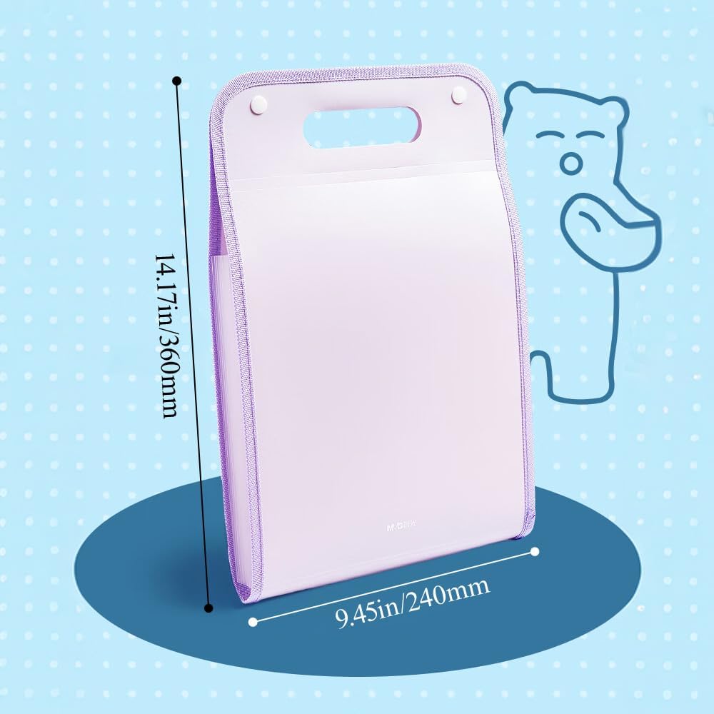 M&G Expanding File Folder 13 Pockets Accordion File Organizer with Labels, Portable Document Receipt Organizer Hold A4 Letter Size Paper, Waterproof Folder for Schoolbag Office Supplies (Purple)
