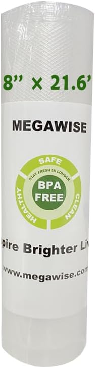 - Product 2: ๐ Mega Value ๐: Vacuum bags 8''x 21.6' increase 50% of the suction power with embossed channels design. Customsize bags eliminating freezer burn and dehydration while maintaining food 7 time fresher yet flavorful. Pre-cut design.