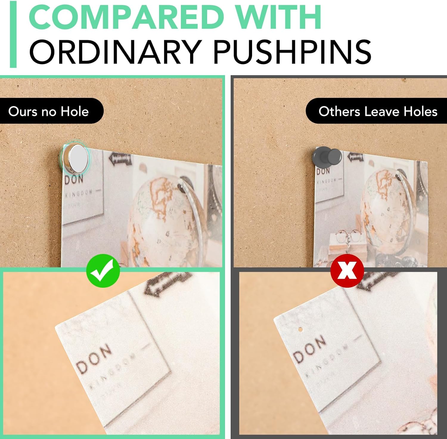 - 【Wide Applications】: Magnetic push pins can be used in offices, classrooms, living rooms, dining rooms, bedrooms, and other places. The decorative tacks for wall can be used on cork boards, foam boards, bulletin boards, whiteboards, and other technological materials with magnetic surfaces. It is very convenient to fix and hang maps, calendars, photos, notes, posters, etc.