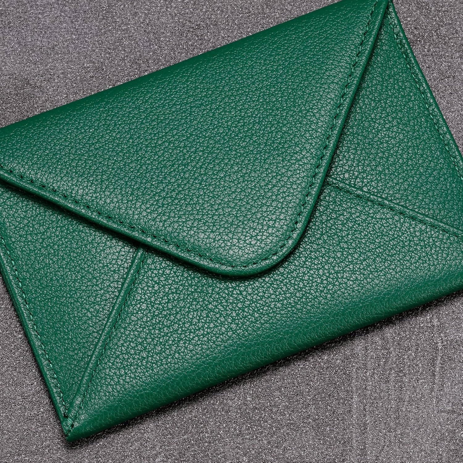 HISCOW Envelope Business Card Case with Magnet Closure - Italian Calfskin (Green)