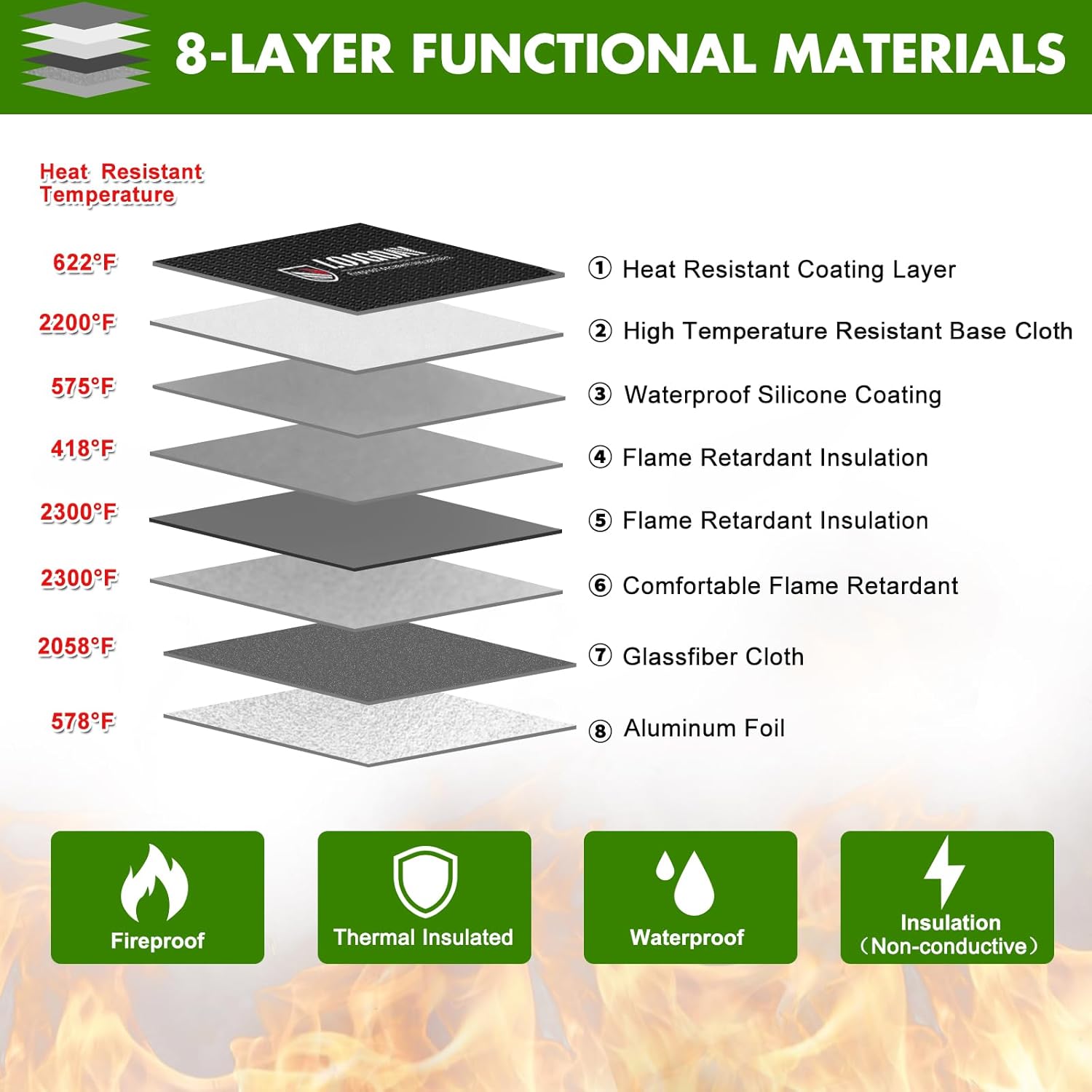 - 🔥UNIQUE NESTED DESIGN : Thanks to the 8 layers of functional materials, fireproof waterproof document bags can withstand temperatures up to 5200°F, and the unique nested design allows fire bag has independent space between the layers of materials, so that heat transfer from the different non-direct contact media, constantly weakening, blocking heat transfer. fireproof bag give you enough time to save your valuables from fire