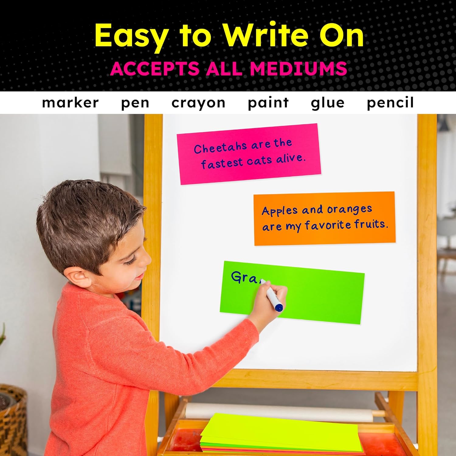 Hygloss Small Poster Board 4x11 - 100 Assorted Neon Color Poster Boards Bulk Pack - 10 Pt. Thickness Colored Poster Board Paper for Projects, Flash Cards, Signs - Posterboard Multipack 4" x 11"