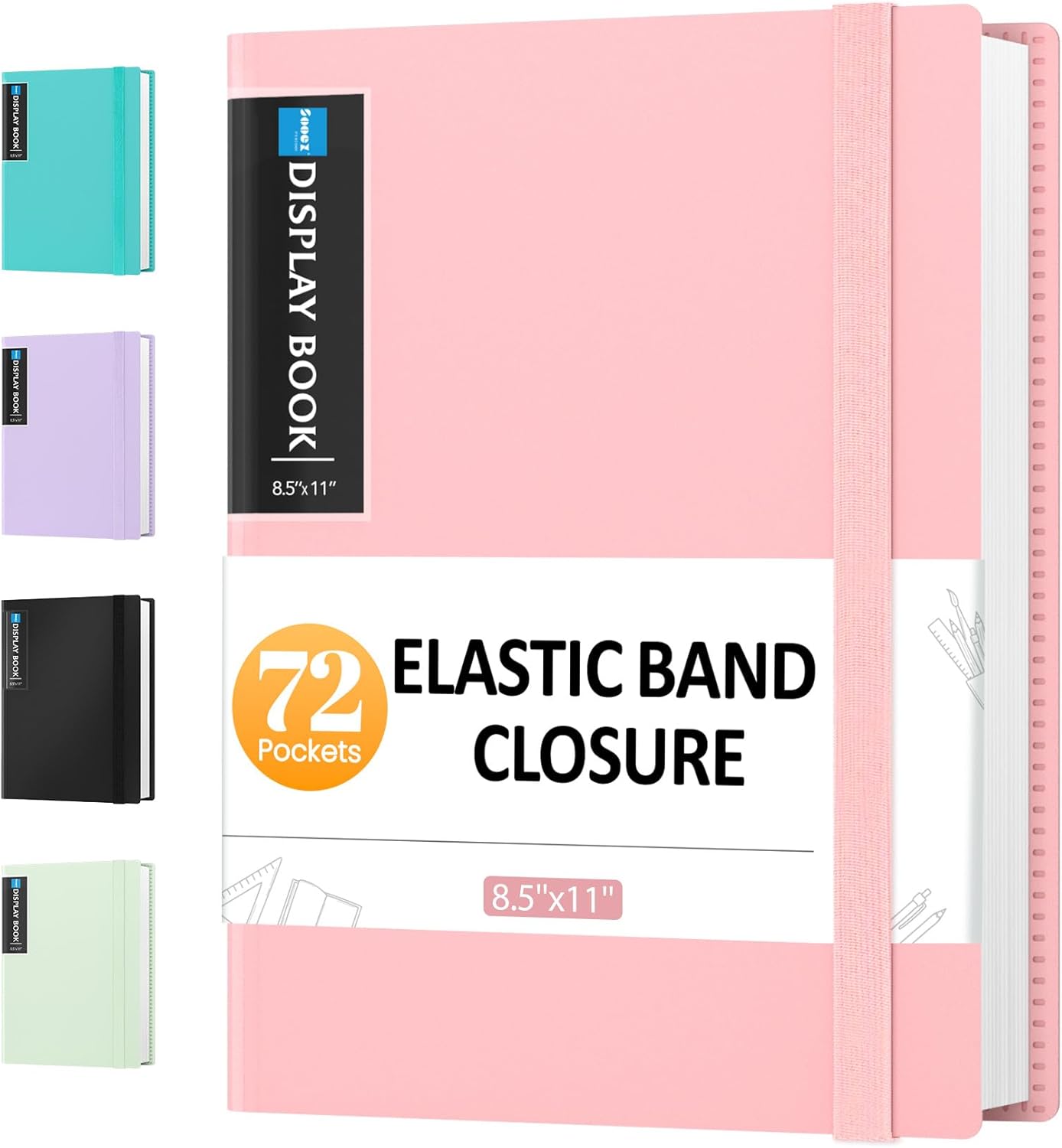 Sooez 72 Pocket Binder with Plastic Sleeves & Elastic Band, Large Capacity 8.5x11 Presentation Book Display 144 Pages, Art Portfolio Document Folder with Clear Sheet Protectors for Office School