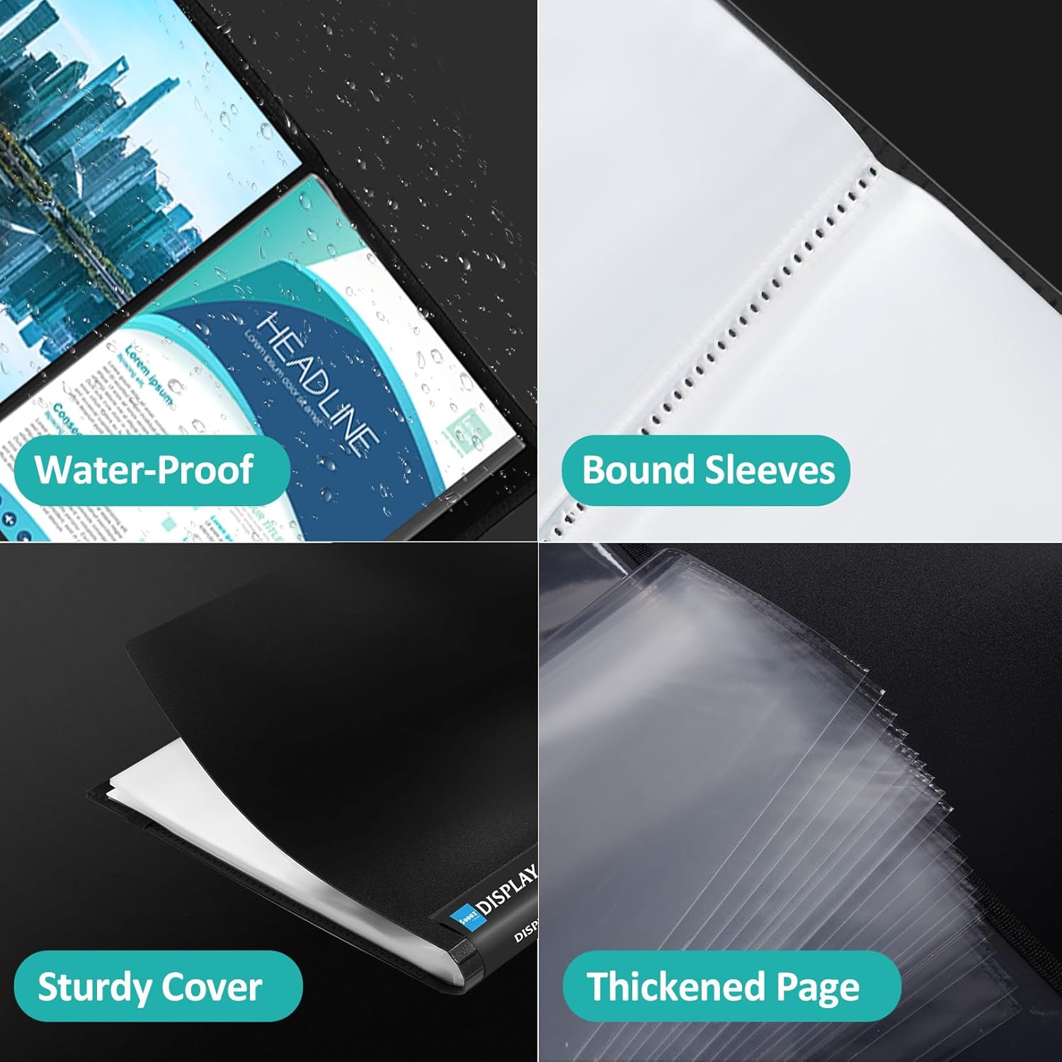 - High Transparency & Customisable Spine: Our presentation book with crystal clear PP sheet protectors offers complete transparency for checking through and organizing. You can label and identify your watercolors, sketches, scrapbook, art pieces, sheet music, certificates, and other projects by customizing the reversible spine insert.