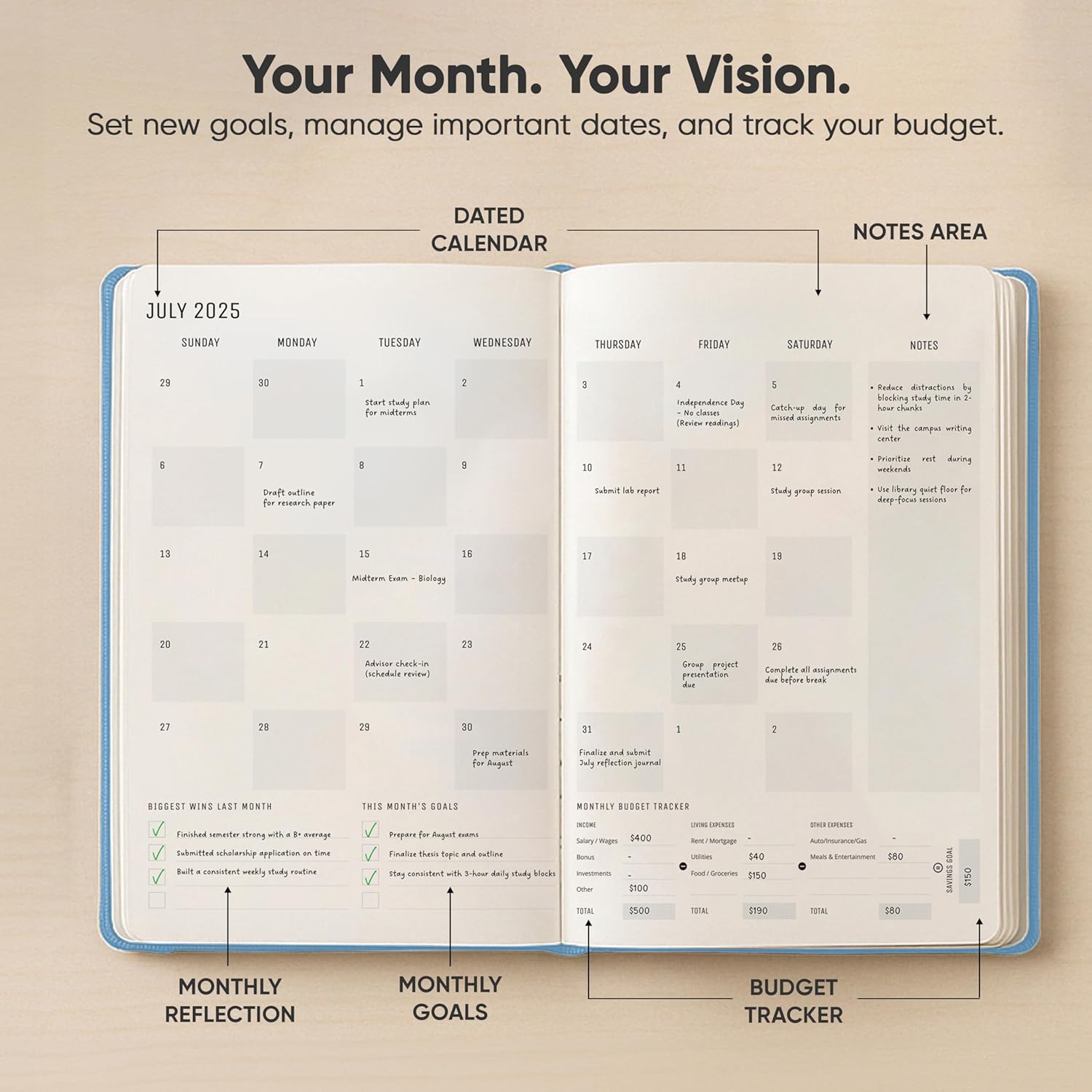July 2025-2026 Planner 8.5 x 11 Pro Max - Dated Productivity & Academic 2025-2026 - Daily, Weekly & Monthly Planner With July Start Date - A4 - Productivity Store