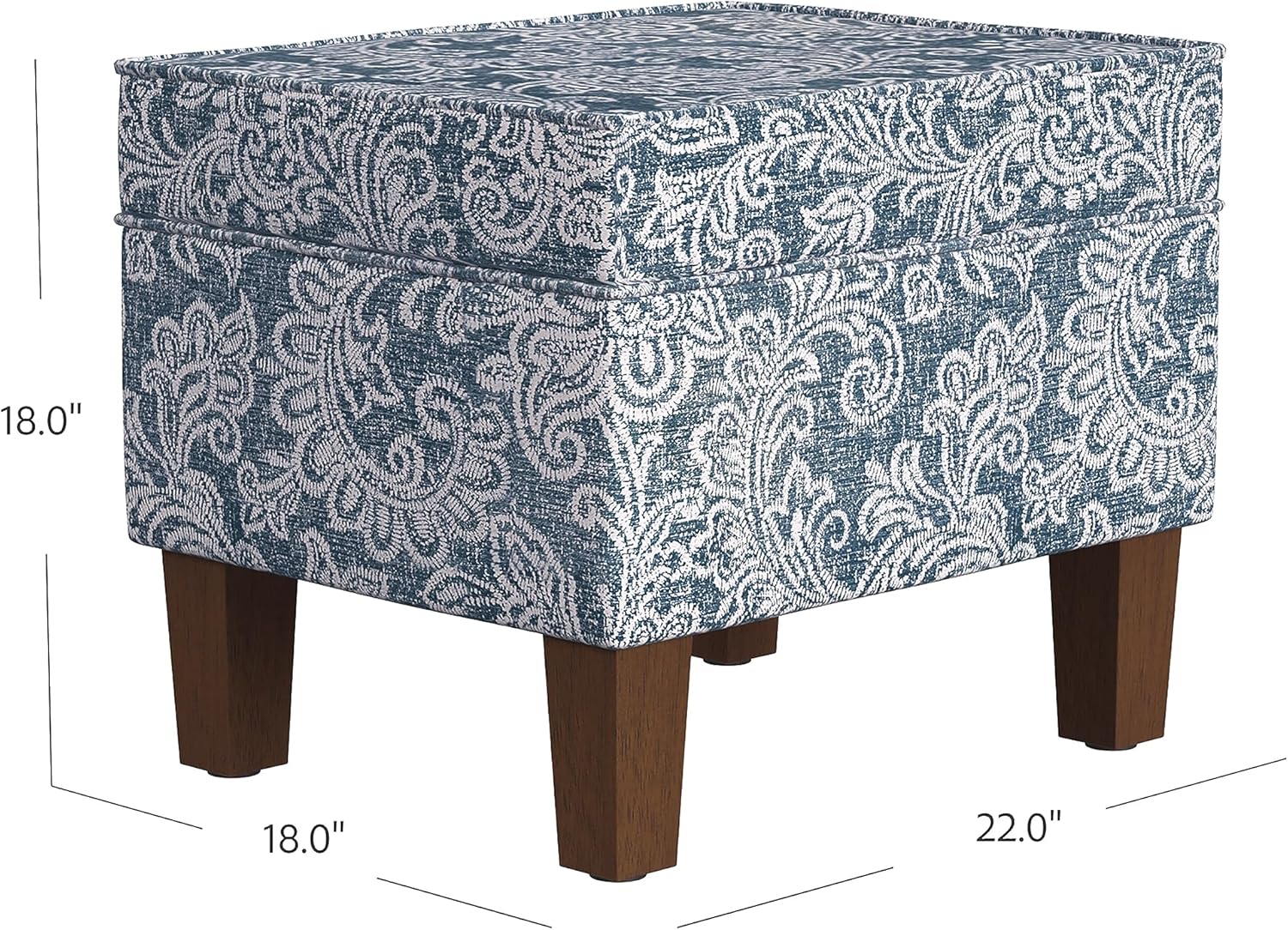 Home Decor | Dinah Collection Modern Storage Ottoman | Ottoman with Storage for Living Room & Bedroom(Blue Denim Jacobean Print)