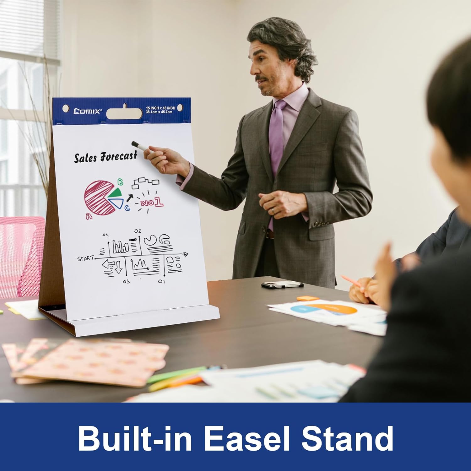 Comix Sticky Portable Tabletop Easel Pads, 15 x 18 Inches Flip Chart Paper for Training, Presentation, Meetings, Doodling, 20 Sheets/Pad, 2 Pads/Pack