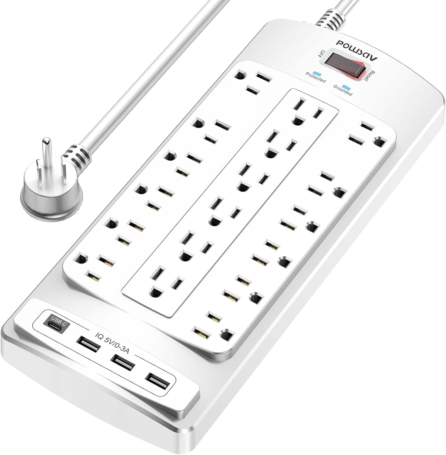 - Power Strip with 18 outlets & 4 USB Ports: 18AC outlets & 4 USB ports (5V/3.0A, 17W) power strip with 6 feet Flat Plug Heavy Duty power extension cord(1875W/15A), surge protector(2100 Joules) with overload protection protects against spikes and fluctuations,Lots of outlets for a computer desk works great for all the electronics a gamer needs.