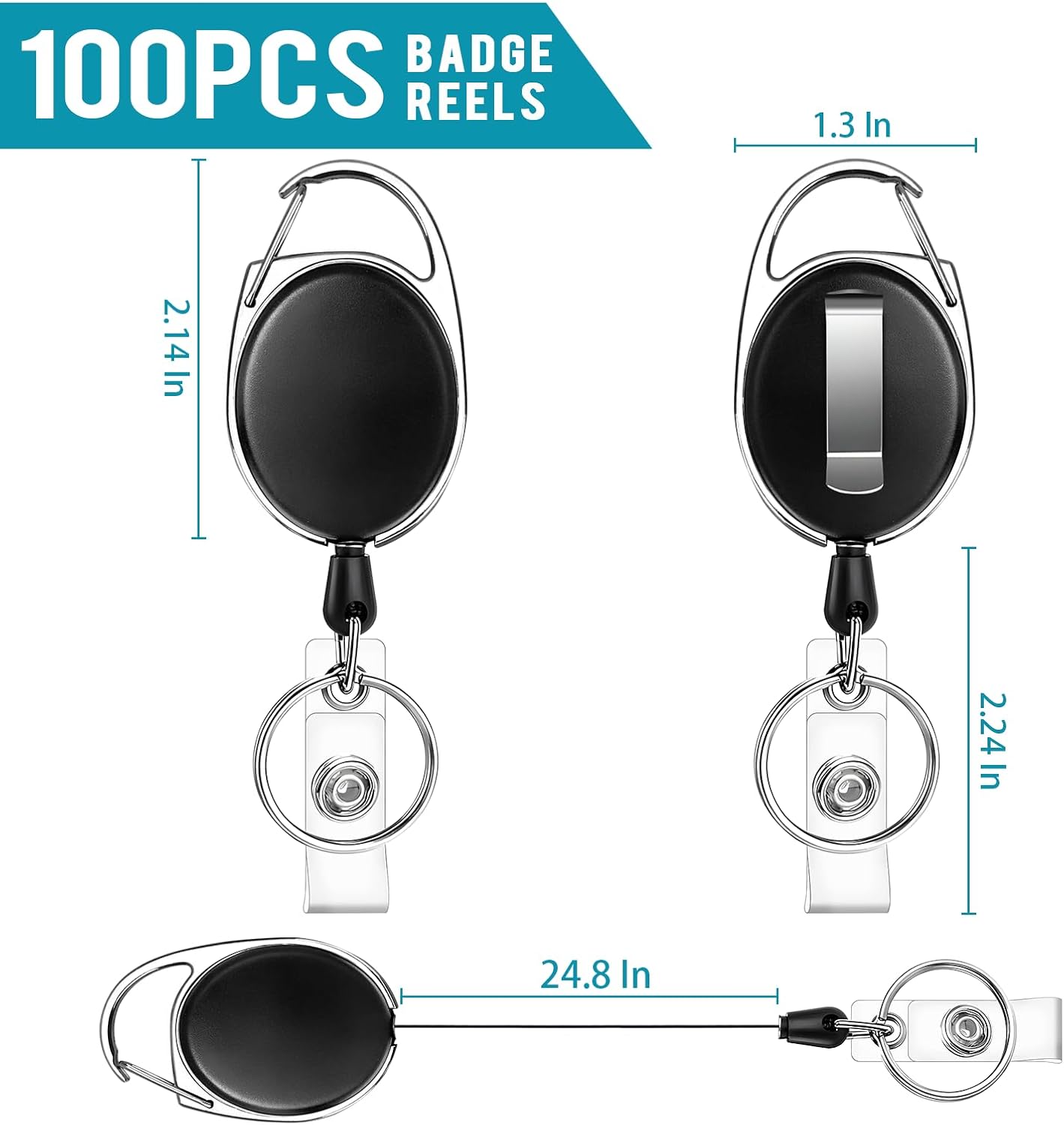 100 Pcs Badge Reel, ID Badge Holder Retractable Clip, Heavy Duty Keychain Badge Reel,Badge Clip, Bulk Lanyard for Wear Keys, ID Card, Name Hold