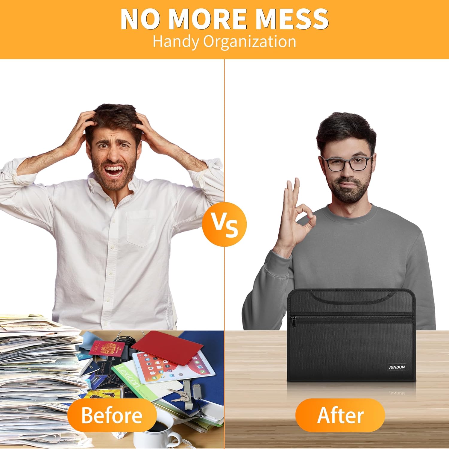 - USER-FRIENDLY DESIGN: Eliminate mess and disorder with JUNDUN file organizer folders.Our innovative design lets you neatly organize letter/A4 files,receipts,cards,USB drives,pens,passports and more.With this document holder,you can manage all your files with just one tool,saving both time and money.Streamline your life and keep everything organized with our affordable solution