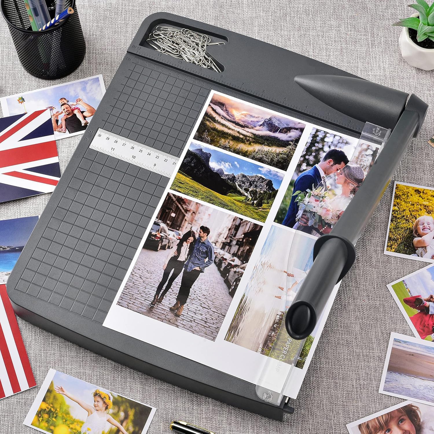 • Multifunctional Paper Trimmer: Designed with a safety guard, a safety latch, and anti-slip rubber pads, this professional paper cutter/trimmer can cut 12 sheets (20-16 lb) at a time safely for multiple purposes of use; a paperclip storage convenient for quick and hassle-free paper waste disposal or paperclip, binder clips, and small accessories storage
