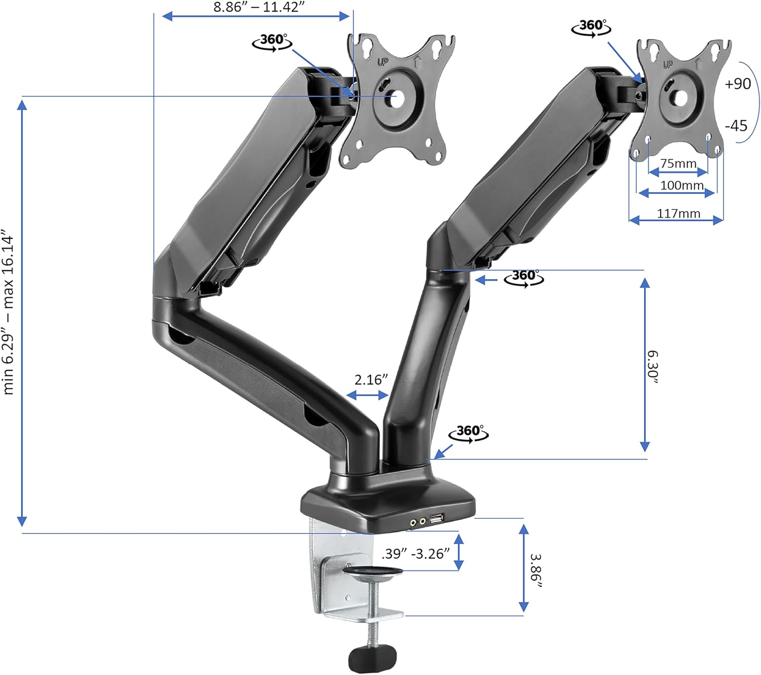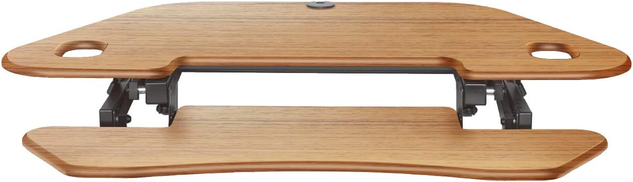 - Quick, easy and stable height adjustment: Sturdy metal frame with easy-grip side handle and gas piston assist, can raise and lower up to 40 pounds from 5" up to 18" above desktop. Straight up and down motion minimizes required depth (23.25").