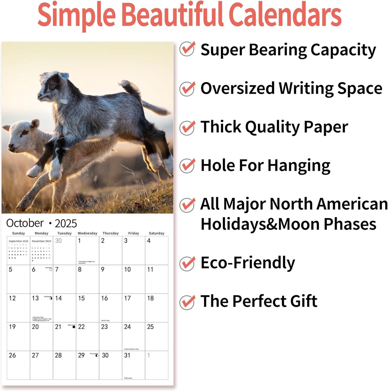 2025 Wall Calendar,Calendar 2025, January 2025 - December 2025, Wall Calendar Baby Moo Moos, 12" x 24" Opened,Full Page Months Thick & Sturdy Paper for Calendar Organizing & Planning