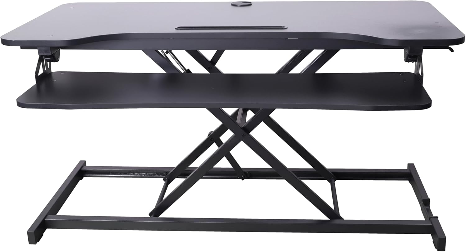 Rocelco 43" Height Adjustable Standing Desk Converter - Tall Sit Stand Up Tabletop Riser with Tablet Slot - Home Office Computer Workstation - Deep Keyboard Tray for Laptop Mouse - Black (R VADRB-43)