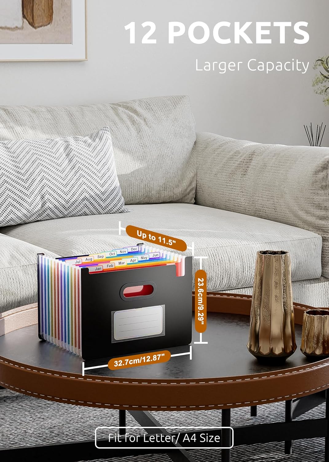 - LARGE CAPACITY & SPACE SAVER - 12 pockets, full size expansion top & bottom, expand and shrink with growing files flexibly, as small or large as a want it