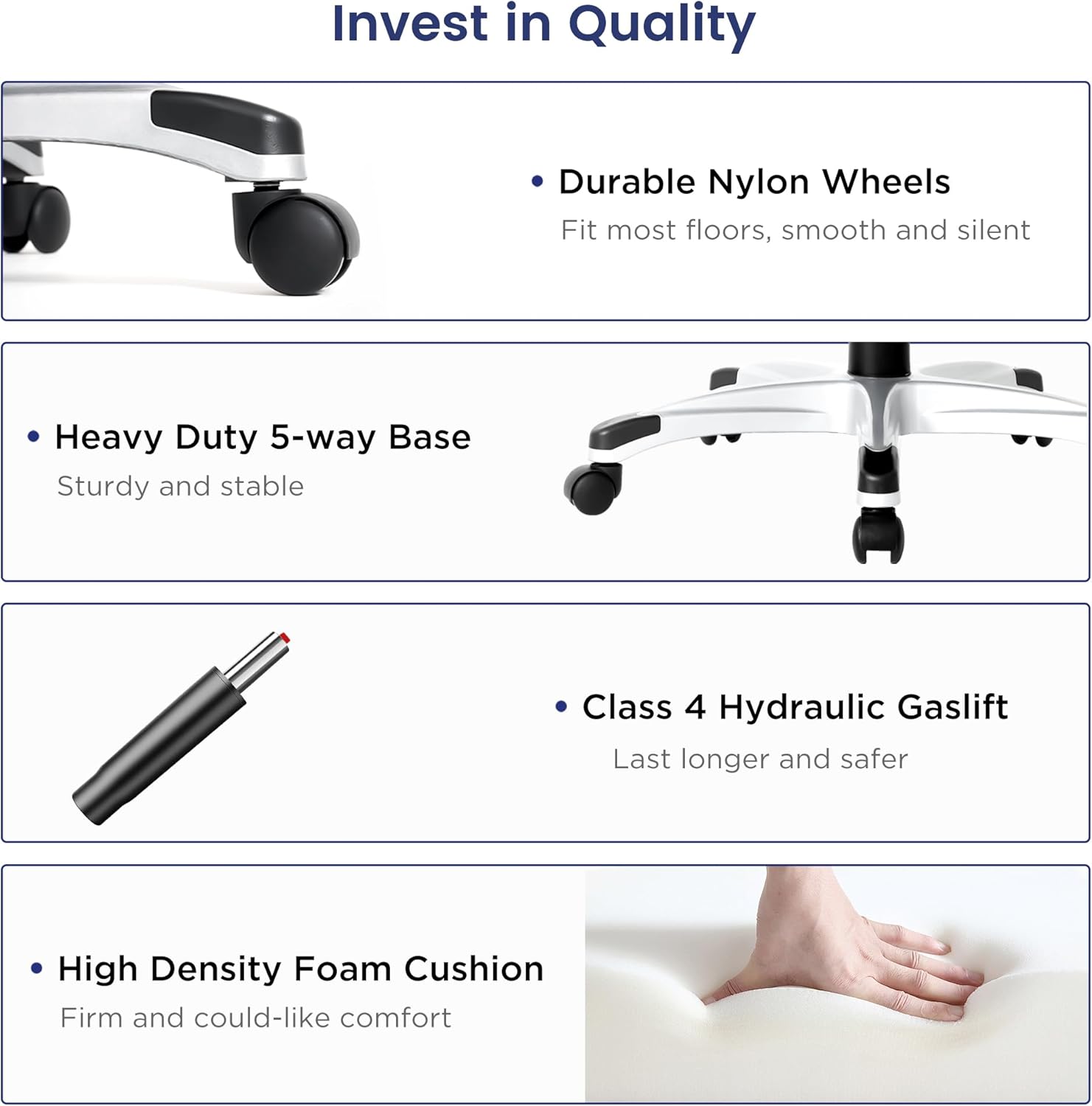 - Ergonomic & All Day Comfortable: 5 level adjustable lumbar support, for lumbar and lower back pain relief. It offers excellent back and lumbar support by redistributing weight away from the spine and hips. Both the backrest and cushion are contoured to support the natural curvature of the spine, good for sitting long hours