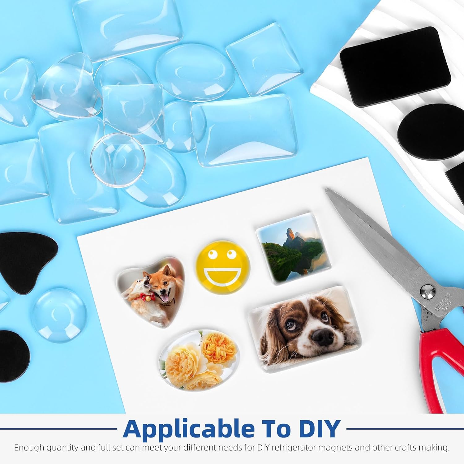 - ♛【What You Get】: You will receive 36pcs ferrite ceramic magnets with adhesive backing includes 25mm round, 28mm square, 28 x 38mm oval, 33mm heart and 31 x 50mm rectangle shapes. And 36pcs clear glass domes includes 27mm round, 30mm square, 30 x 40mm oval, 35mm heart and 33 x 52mm rectangle shapes. 72pcs in total. Enough quantity to meet your DIY refrigerator magnets and other craft making different needs.