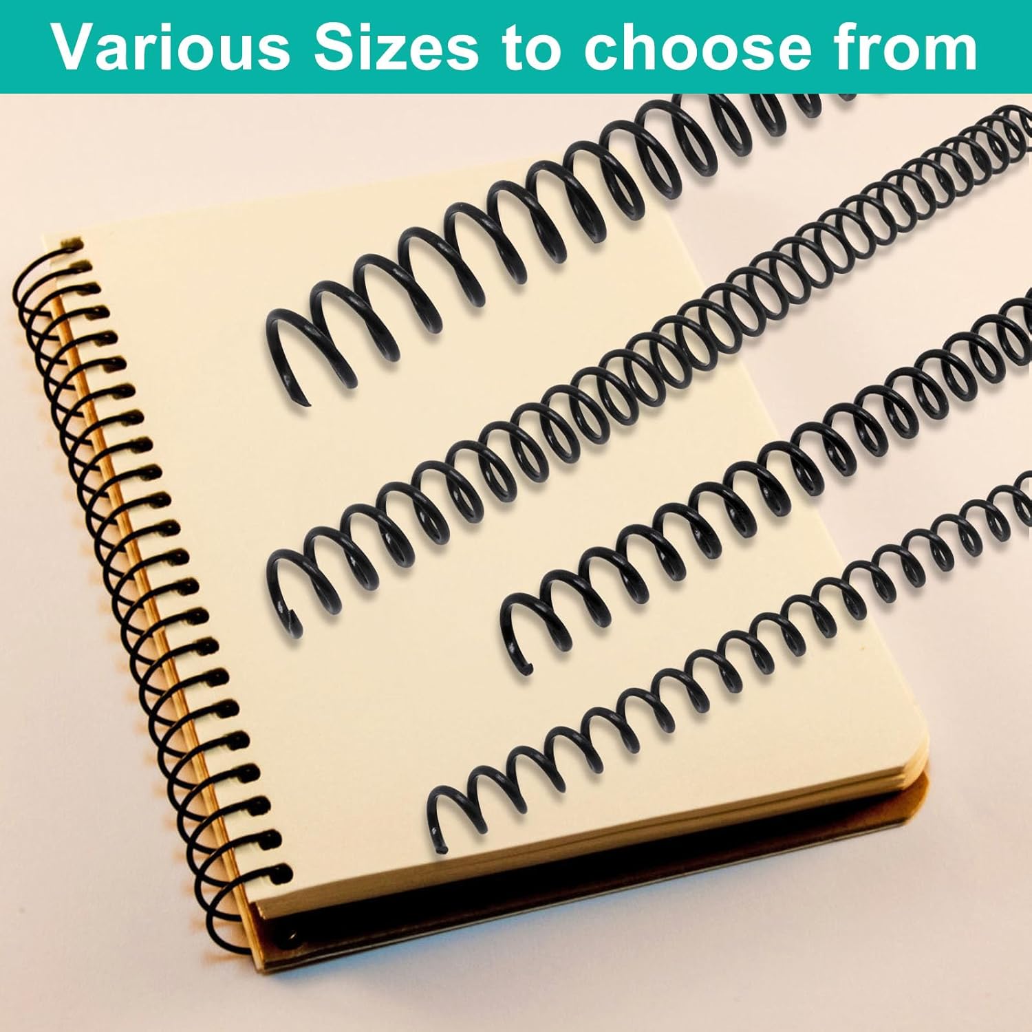 - 【Multiple Sizes for Your Choices】There are 4 sizes of black spiral binding coils, 25 pieces of each size, namely 1/4"(6mm, 30 sheet capacity), 5/16"(8mm, 40 sheet capacity), 3/8"(10mm, 75 sheet capacity) and 1/2"(12mm, 90 sheet capacity) to match and embellish most documents or pages, ideal office accessories.