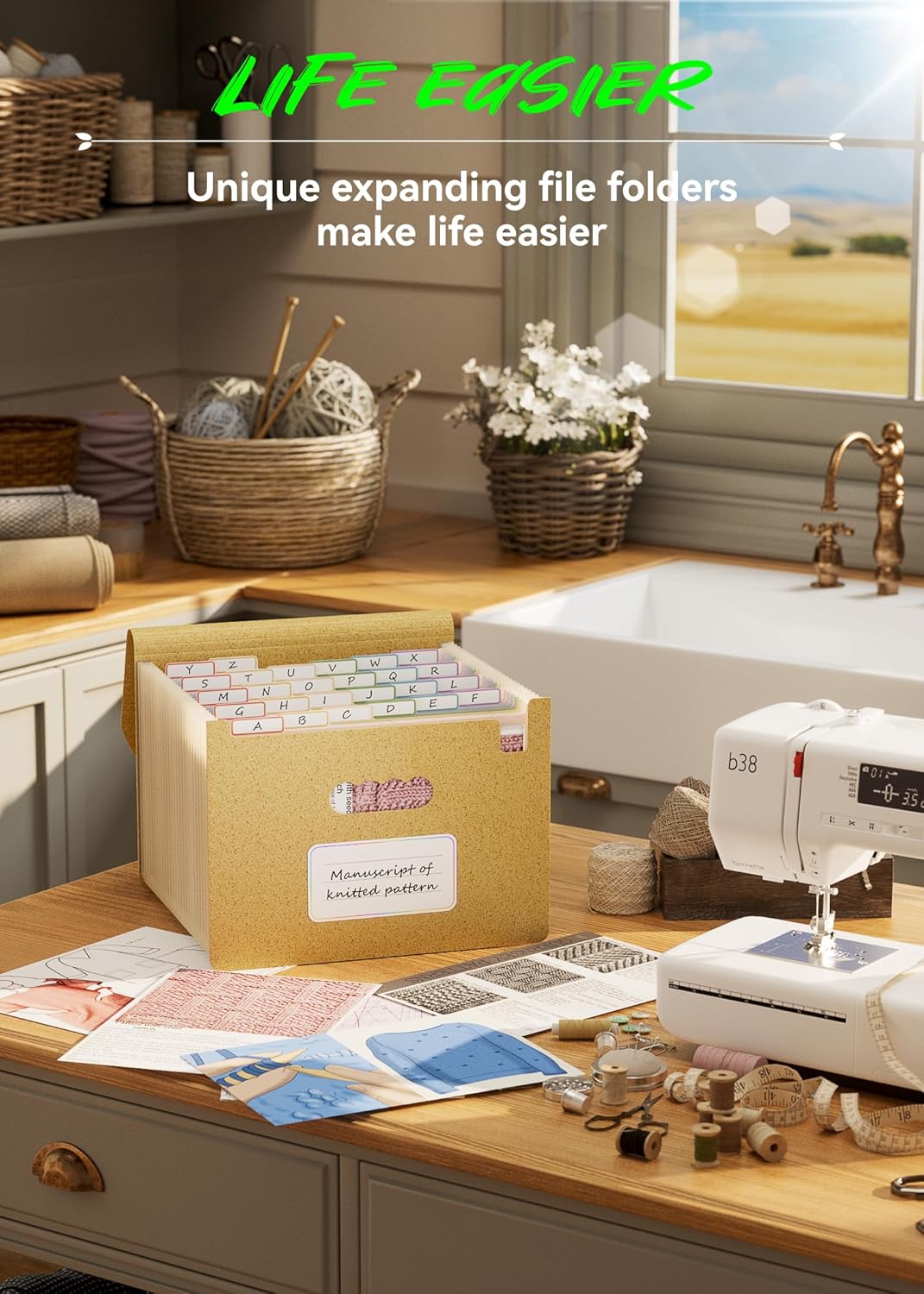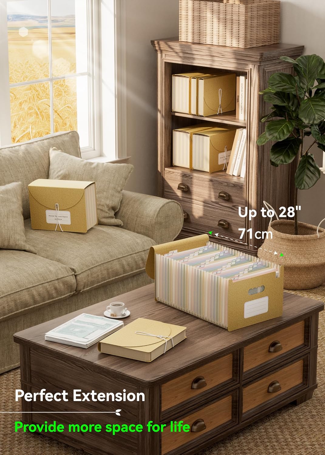 Accordion File Organizer, 26 Pockets Wheat Straw Expanding File Folder, Monthly Bill Receipt Organizer, A-Z Tabs, 100% BPA Free, Return to Nature, Healthy Living, Letter/A4 Size-Wheat Yellow
