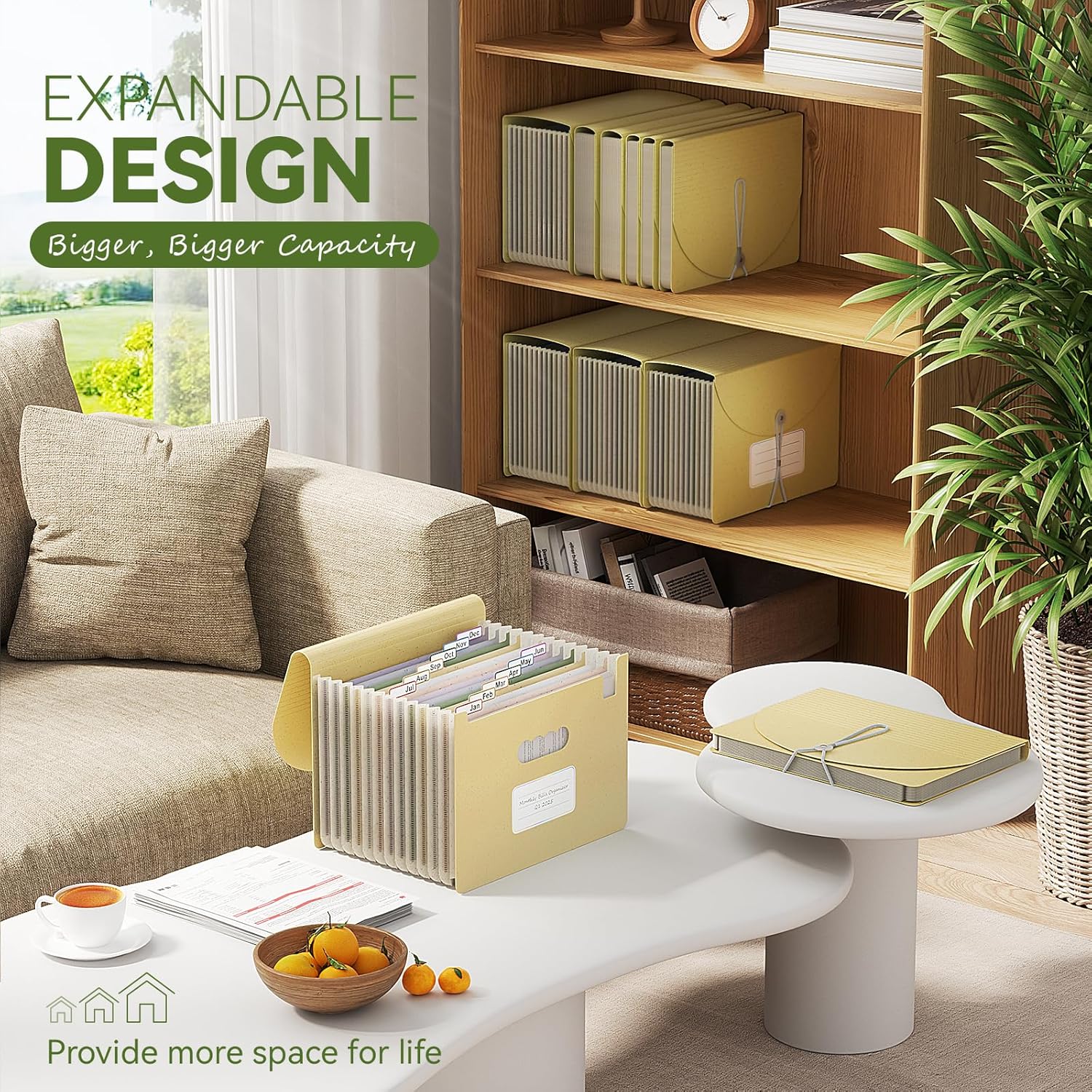 Accordion File Organizer, 13 Pockets Wheat Straw Expanding File Folder, Portable Monthly Paper Bill Tax Receipt Organizer, Letter A4 Size Document Holder with Colorful Tab - Wheat Yellow