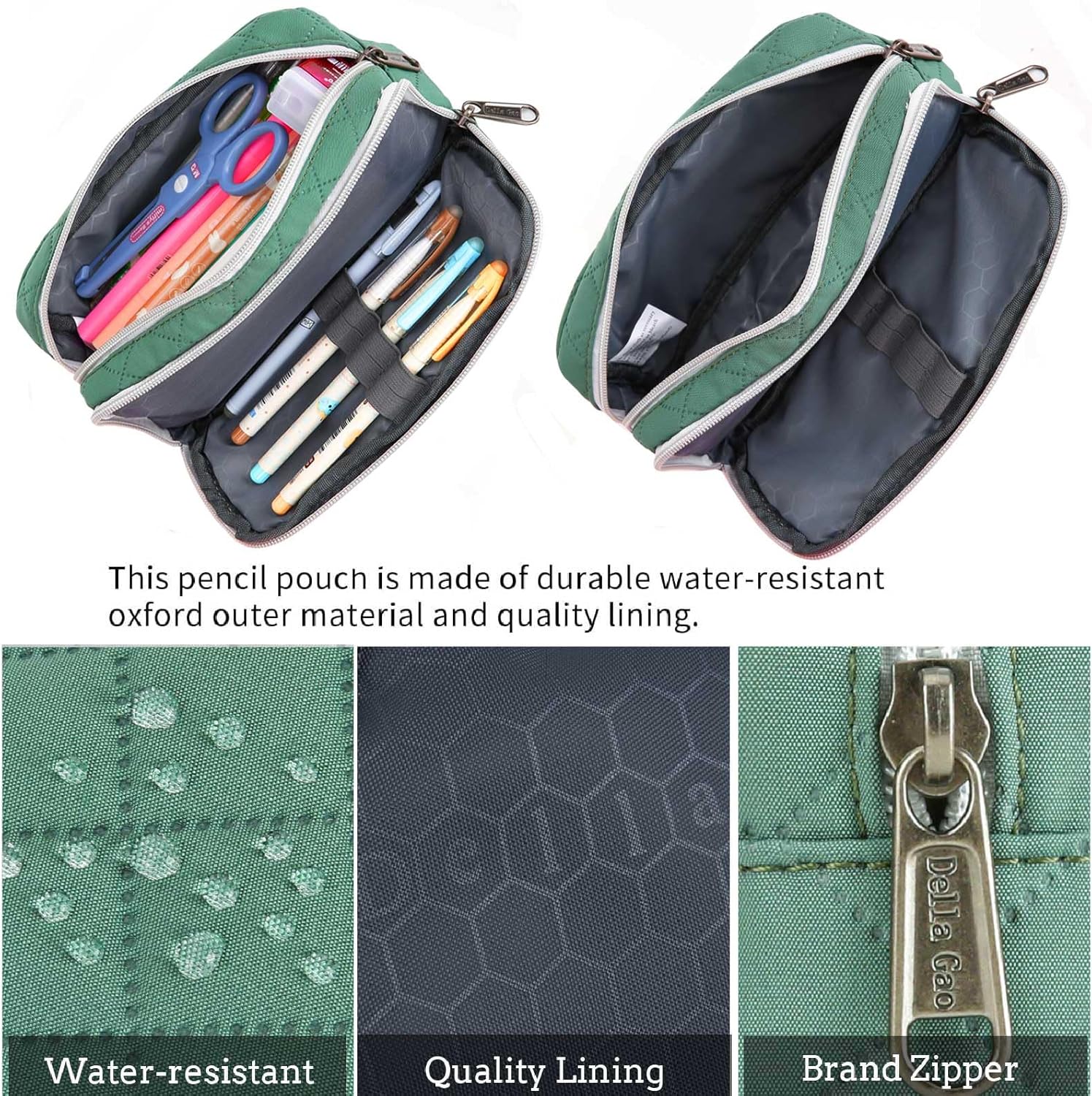 Della Gao Pencil Case Large Capacity Pencil Pouch Soft Quilted Pen Bag Office Stationery Organizer Sturdy Pencil Bag for Men Women - Dark Green