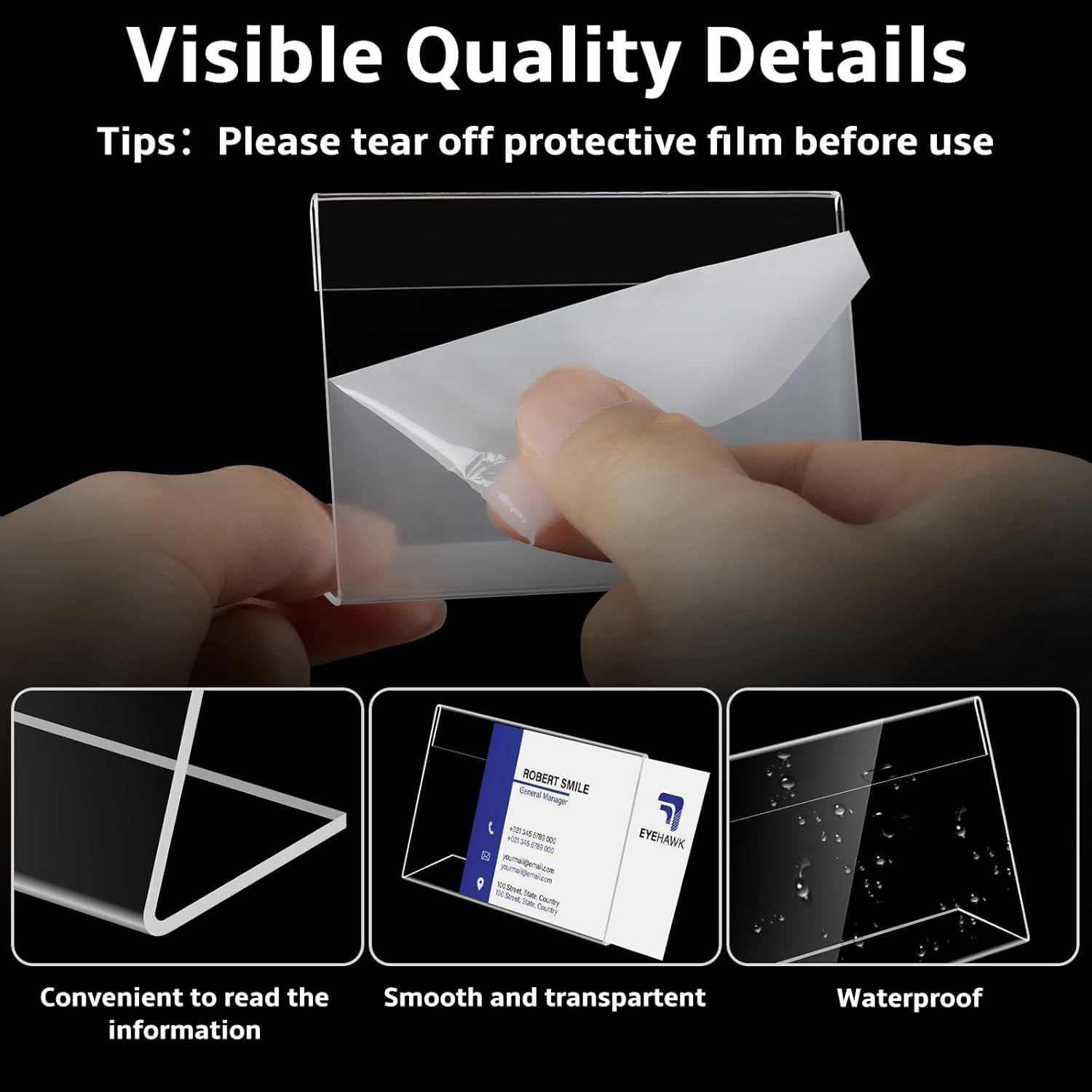 - ✌Elevate Display: This set of 20 L-shaped acrylic card holders is perfect for displaying business name cards, price tags, food labels, and more. Whether you're organizing a retail display, labeling food items at a buffet, or identifying seating arrangements at an event, these clear card display stands offer a practical stylish solution.