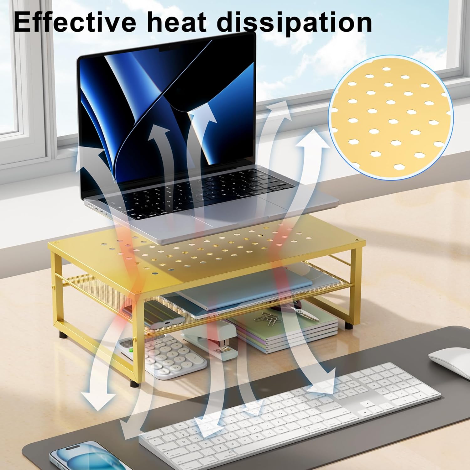 gianotter 2-Tier Metal Monitor Stand Riser, Desk Organizer for Monitor, Office Desk Storage Organizer for Office Supplies (Gold)