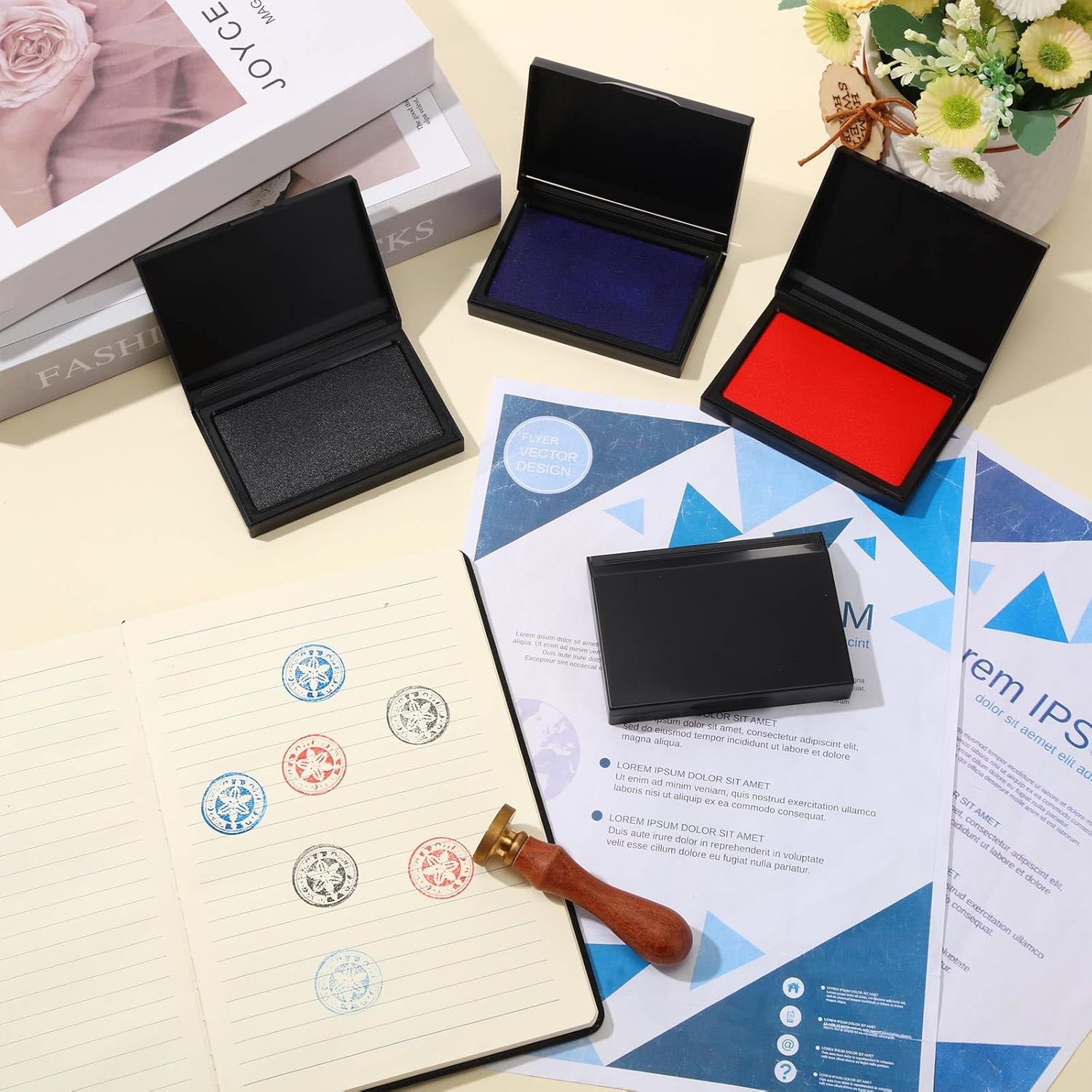 - Multipurpose Pack: this pack includes 9 stamp pads, black, blue and red have 3 of each color, meaning there's plenty at hand for all your office, study, or daily needs; Count on them as your reliable stamping tool