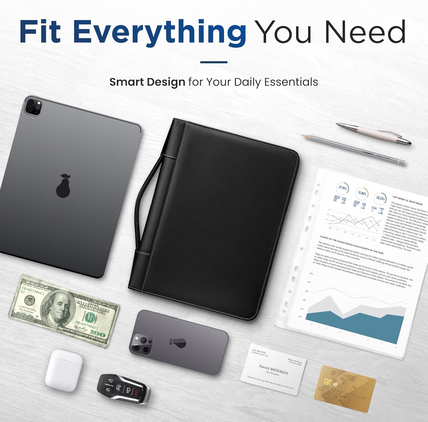 - β SLEEK & PROFESSIONAL: Comes with a retractable carrying handle for convenient carry. The convenient dual zip design makes opening and closing the zipper binder 3 ring a real breeze. Includes business cards slots, a pen holder & a refillable writing pad. Fits most briefcases & bags.