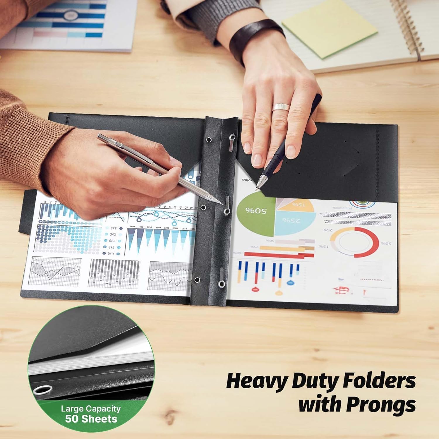 - 【3 PRONG POCKET PAPER FOLDERS】: Each folder comes with two pockets and three prongs that perfectly fit letter-size papers.The pockets are ideal for loose papers, while the prongs keep punched papers neatly in place. Not only provides ample space for storing your documents but also ensures they stay secure.