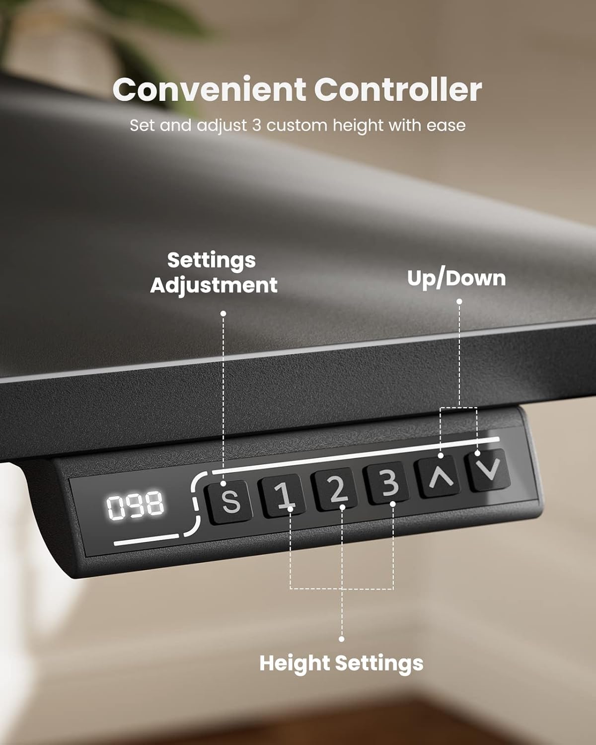 - 3 Memory Height Presets: With user convenience in mind, the Marsail electric standing desk is equipped with intuitive controls that allow you to save up to 4 custom height settings. This feature facilitates seamless transitions between your preferred desk heights, making adjustments swift and effortless.