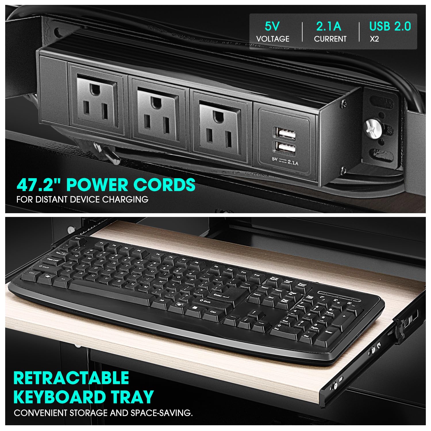 - Special Feature : Adjustable Height, Keyboard Tray, Locking Cabinet, Power Strip, Swivel Casters