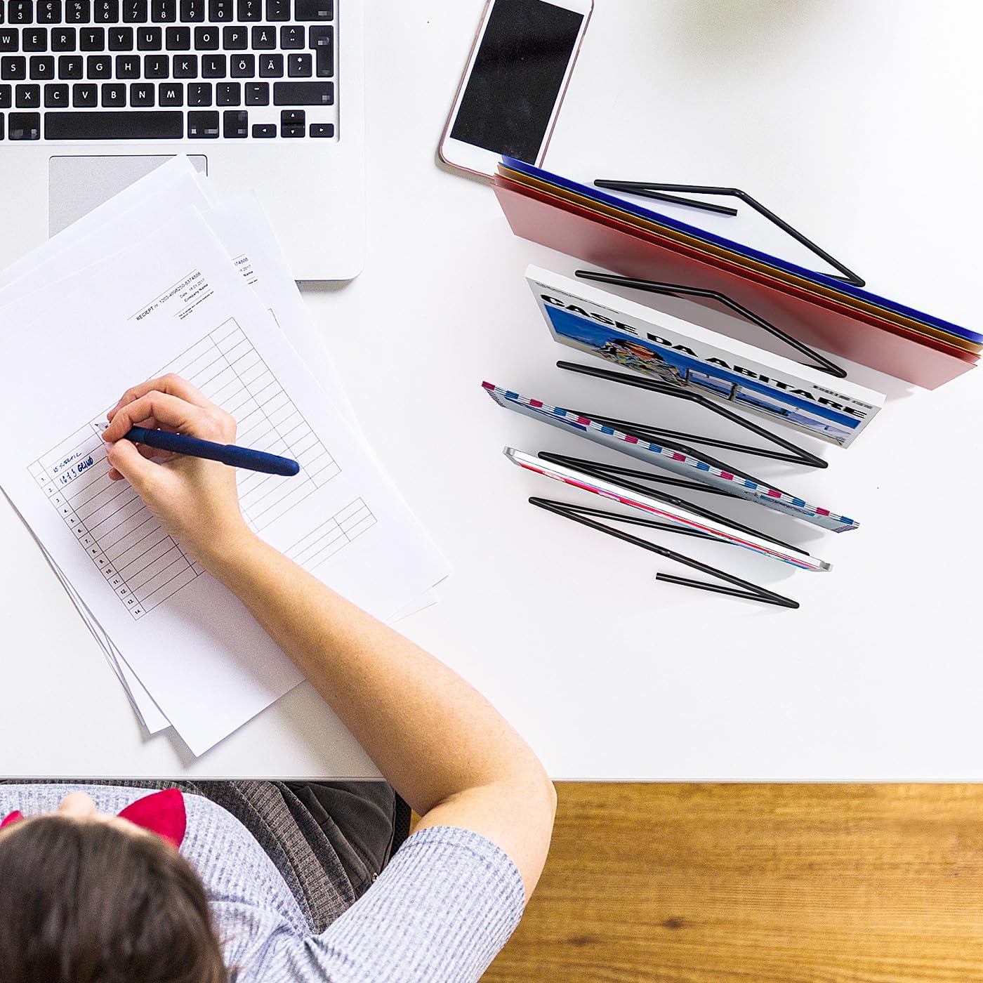 - Useful and Decorative: Different from traditional bookshelves, this Nordic-style magazine rack is a book rack as well as a fashionable setting. It can be used for decoration, photographing and special art. Simple and fashionable, This file organizer adopts simple Nordic style. The stylish shape and smooth line design make it simple and generous.