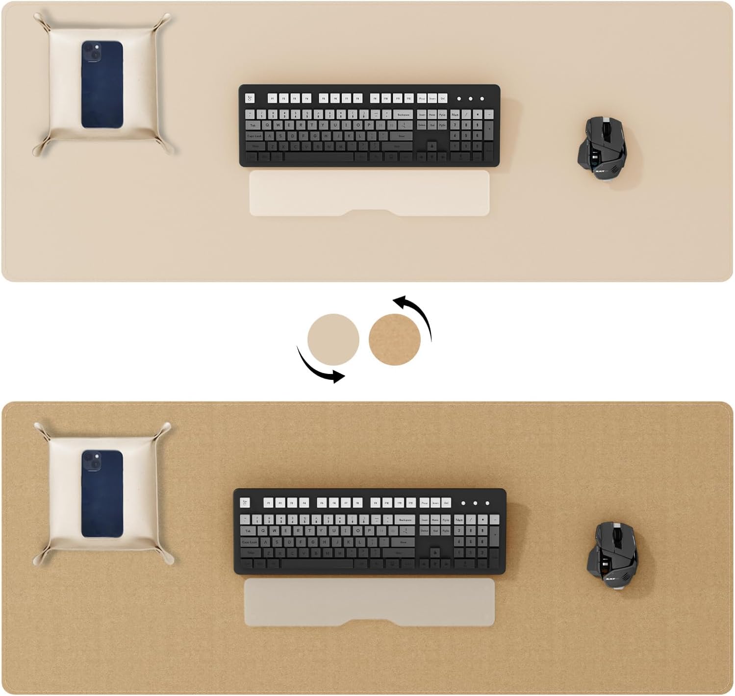 DAWNTREES Dual Sided Desk Mat,Khaki Leather Desk Pad,47.2''x23.6'',Cork Desk Mat Protector,120x60cm Extra Large Mouse Pad,with PU Leather Valet Tray Organizer,Desk Writing Pad for Office and Home
