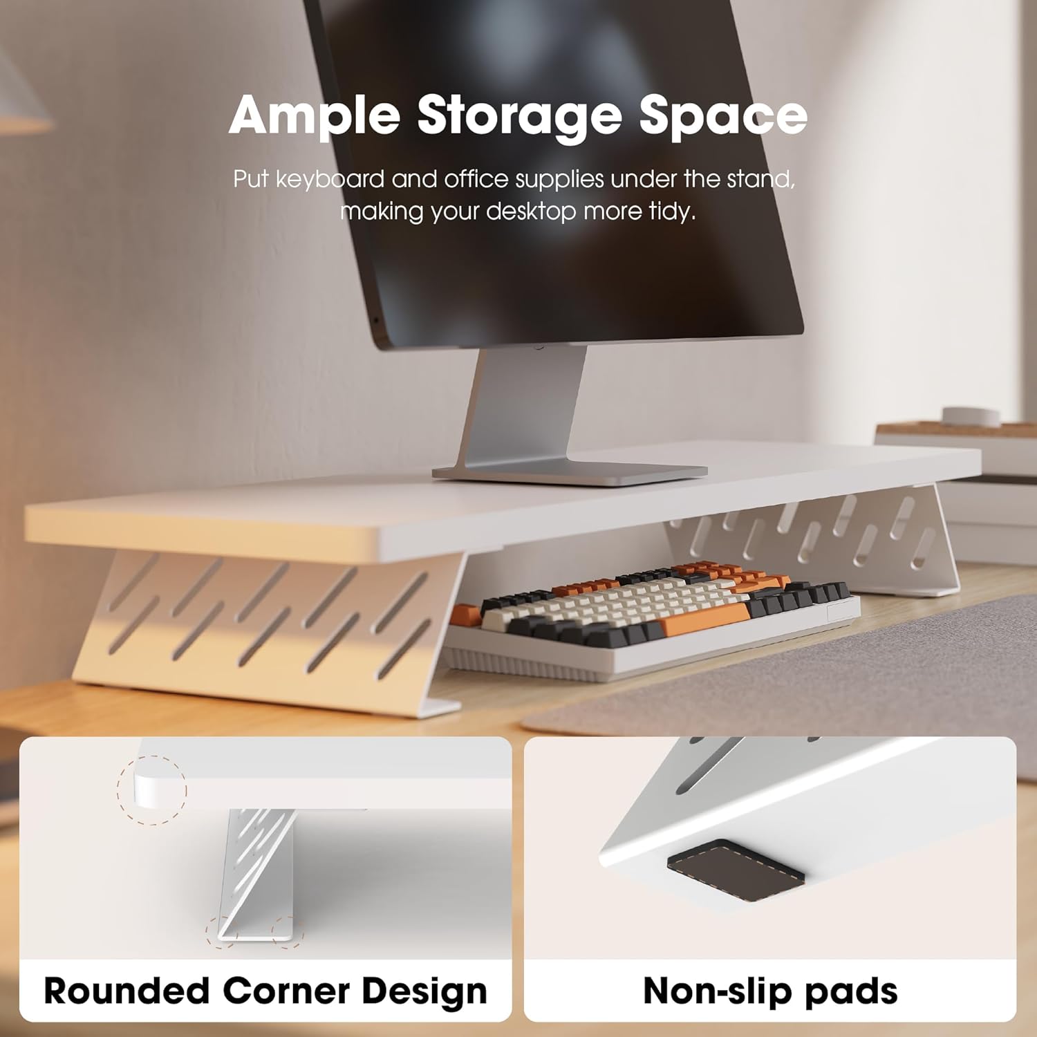 - 【Monitor Stand for Desk】To ensure fenge monitor stand can be used permanently, we have adopted high-quality thickened panels and metal legs. With heavy-duty steel base, so you don't have to worry about collapse or shaking during use. Each desk leg is equipped with a non-slip pad to prevent the table from being scratched. The maximum load-bearing of the monitor riser can reach 55 pounds.