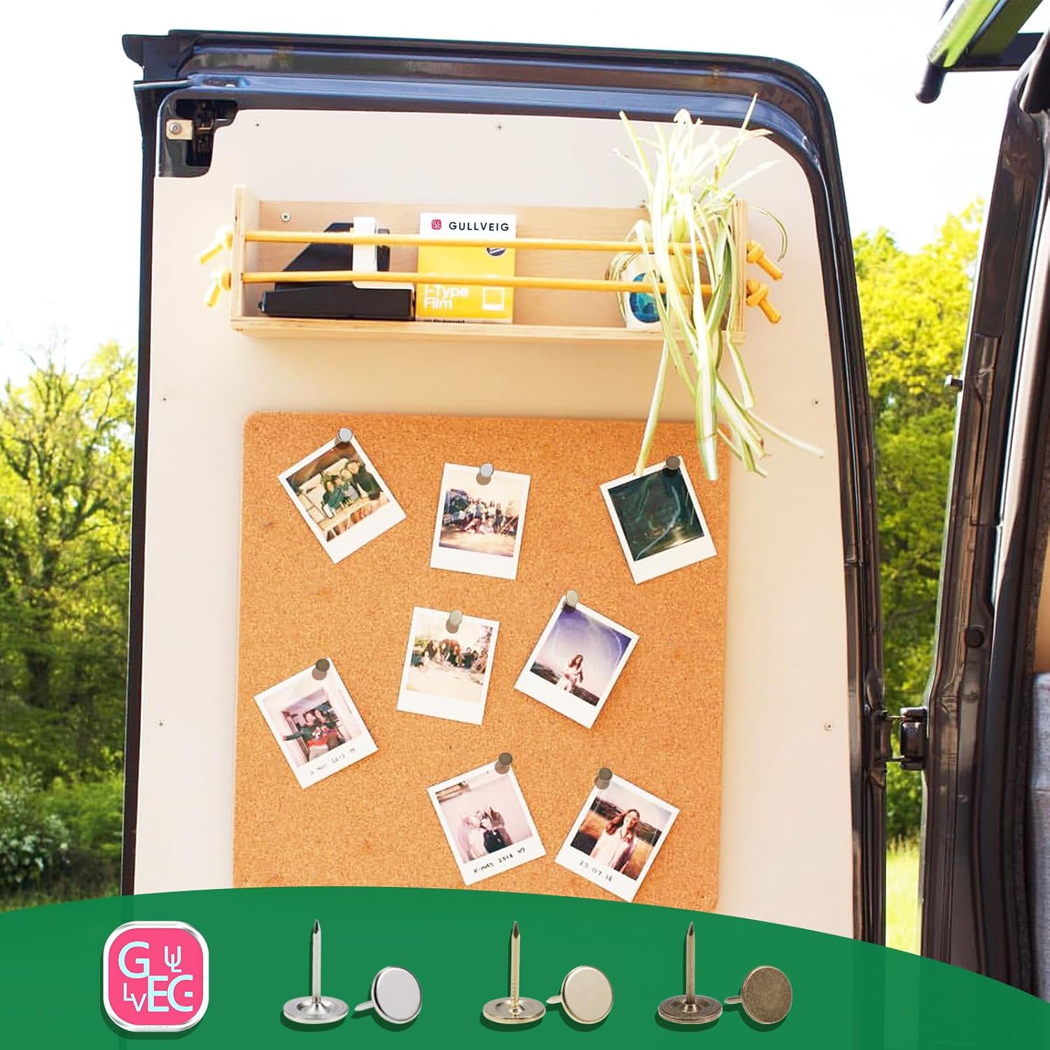Gullveig Silver Push Pins and Thumb Tacks: Heavy Duty Flat Upholstery, Long Carpet Tacks, and Decorative Nails for Wood and Fabric, 50 Count