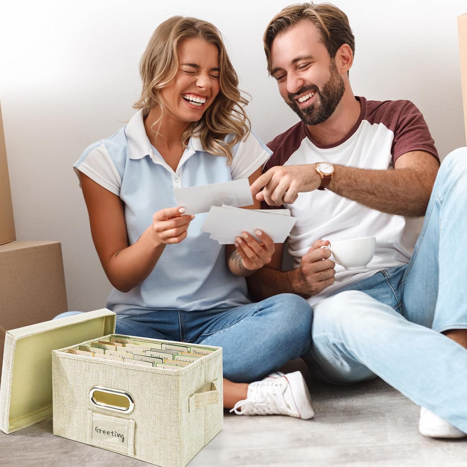 Vienrose Greeting Card Organizer 1 Pack, Storage Box with 20 Adjustable Dividers, Foldable Organizer Box Holds over 150 Cards, Storage Stickers Recipes Photos Envelopes Bills Vinyl Records, Beige