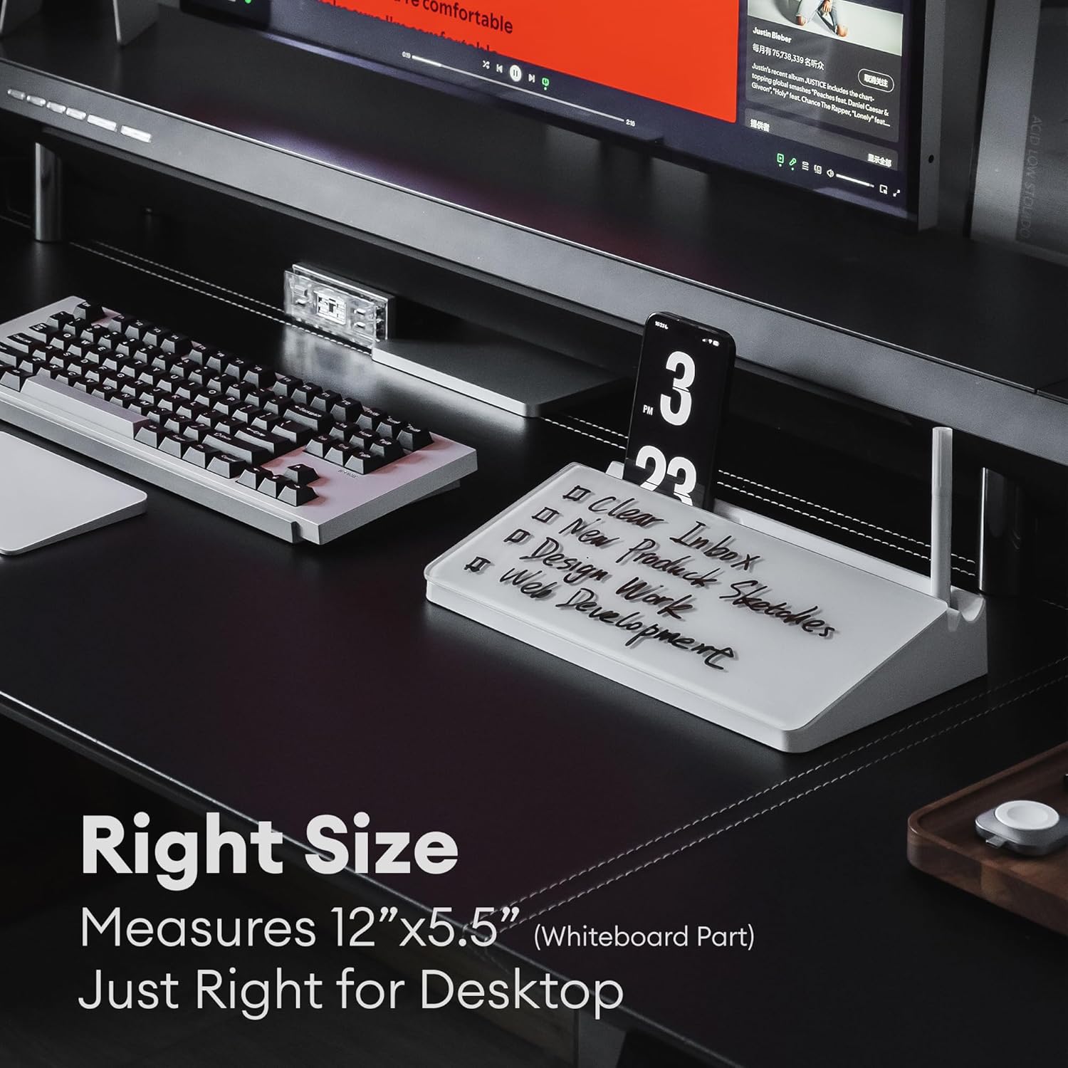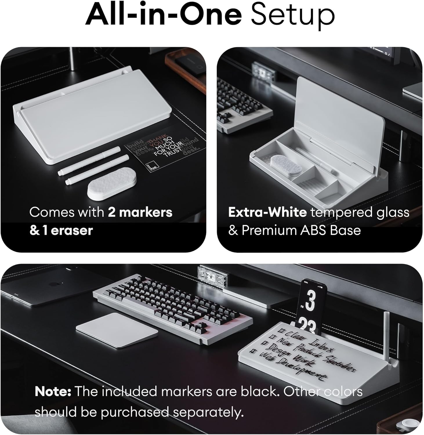 Glass Desktop Whiteboard with Storage 12"x6.5", Glass Whiteboard Desk Dry Erase Board w. 2 Markers,1 Eraser Monitor Mono Board, Office Desk Accessories, Work from Home Essentials