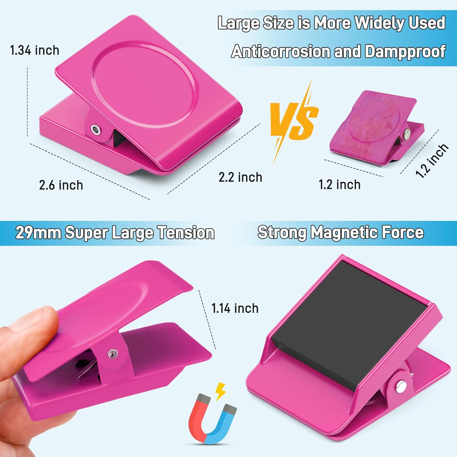 - ✅【Strong Magnet Clips】: Magnet clip width: 2.2 inch ( 56 mm), length 2.6 inch ( 66 mm), magnet clips weight: 3.68oz per clips. The magnetic force of this heavy-duty magnetic clip is much stronger than the ordinary magnetic clip on the market. The square shape conforms to ergonomics. It is very easy to press and has extremely strong grip. It can not only be used to clamp paper items, but also large packaging bags!