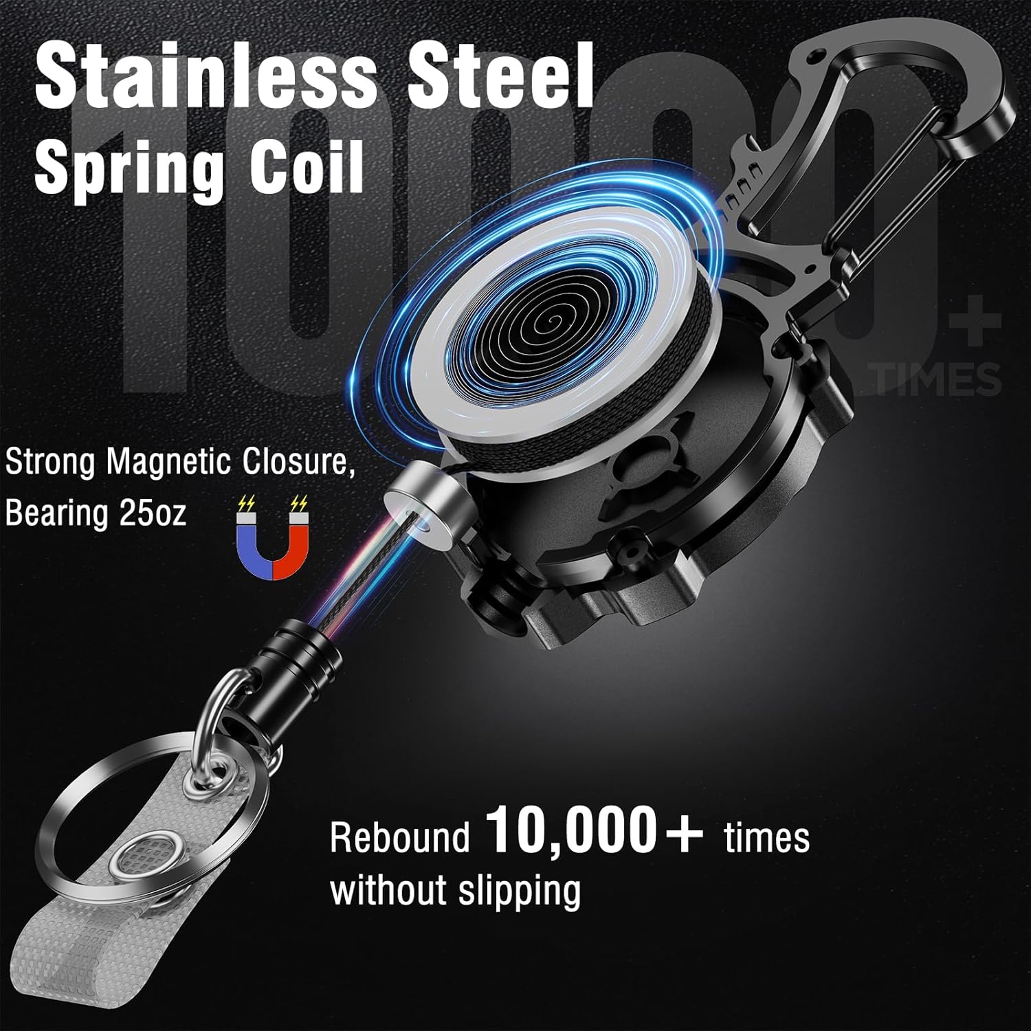 1Pack Heavy Duty Retractable Keychain, Tactical ID Badge Holder Reel Carabiner Clip with Magnetic Closure for Men, Unbreakable Sandwich Construction with 31" Dyneema Cord, Bearing 25oz