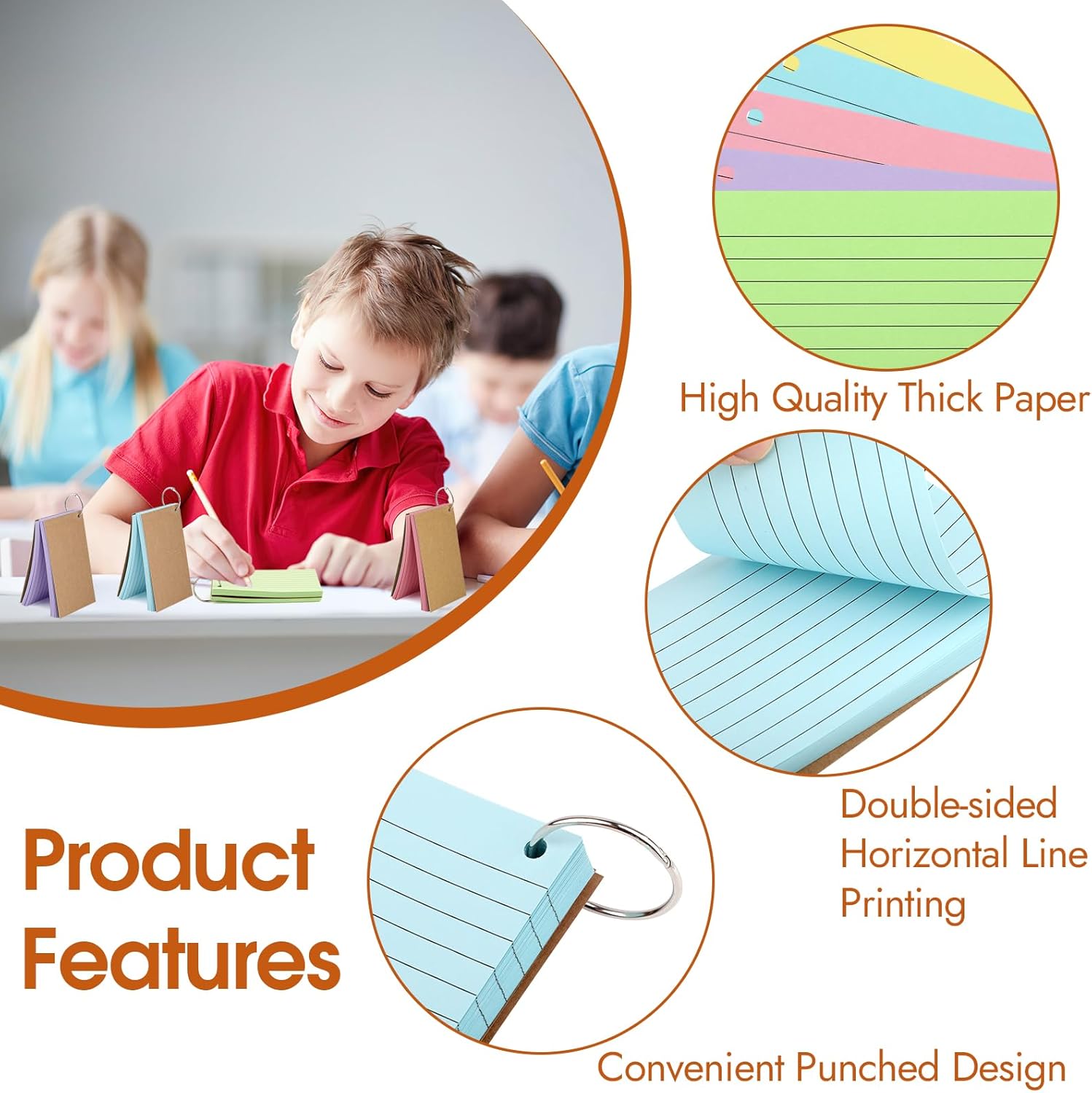 - ☑ 【HIGH QUALITY THICK PAPER】 Notecards with ring is made of 110g thick paper, which is smooth. No matter which pen you use, there will be no ink bleed problem. The thick paper also increases the durability of index cards, not easy to tear, can be used for a long time.
